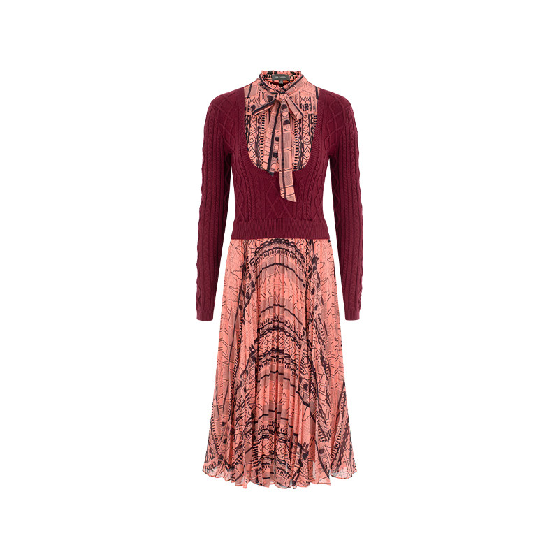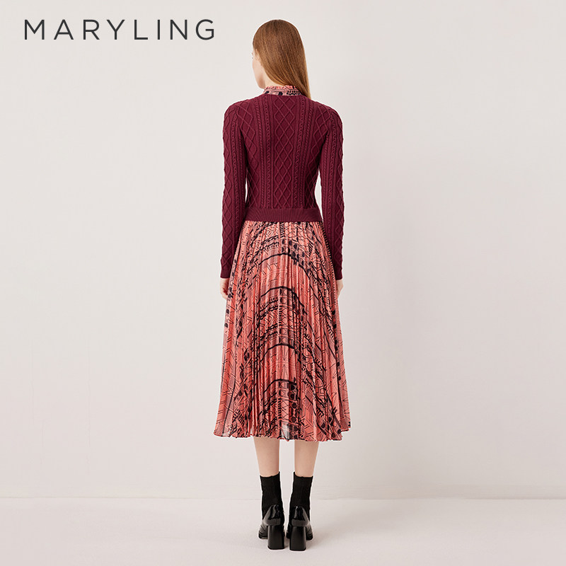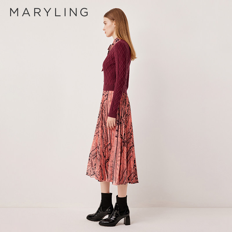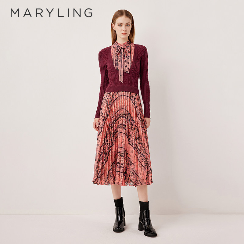 MARYLING玛俪琳2025秋季新品粉色线条印花针织连衣裙A1FGW62010