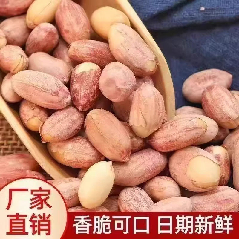 新鲜红皮带壳生花生四粒红花生米农家自种晒干货高产花生红皮花生