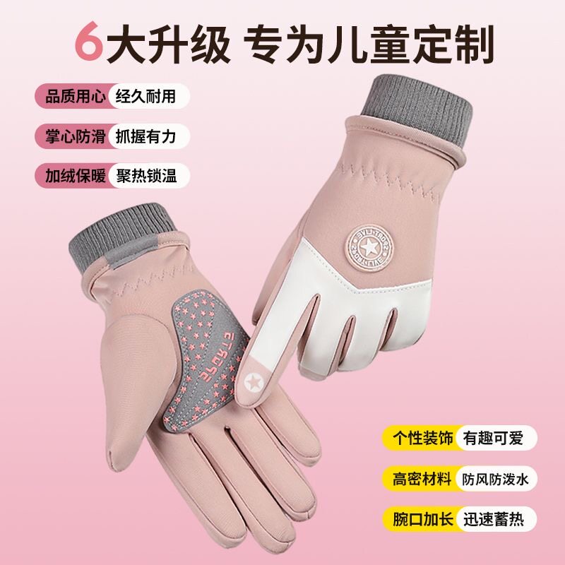 加绒防泼水儿童保暖手套防风防寒秋冬季5-15岁男女童大童滑雪玩雪