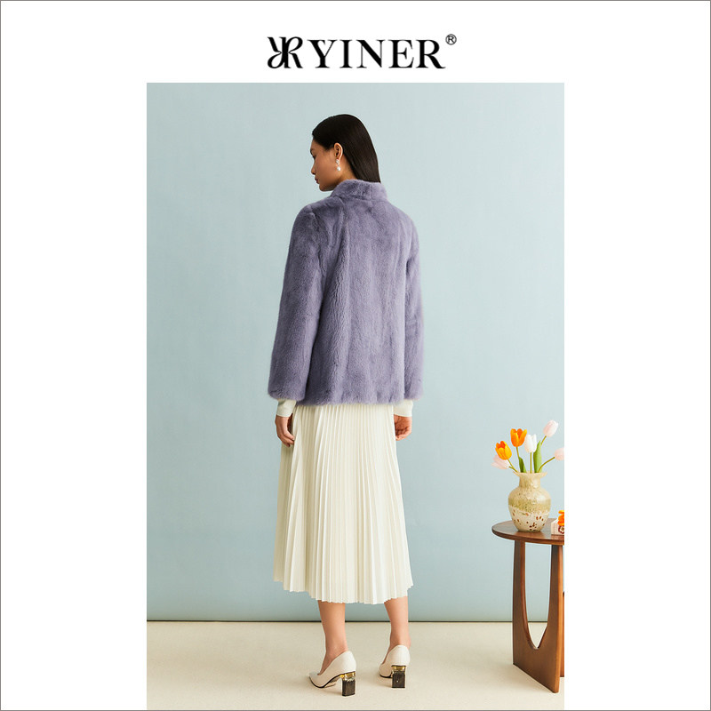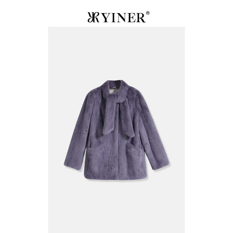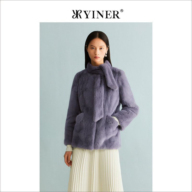 YINER音儿女装冬季绒暖水貂毛皮真皮皮草围脖领外套