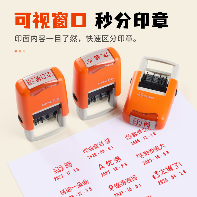 日期印章可调年月日教师评语批改作业定制小红花优秀阅优良阅你真棒已背书已订正自动翻转回墨印章