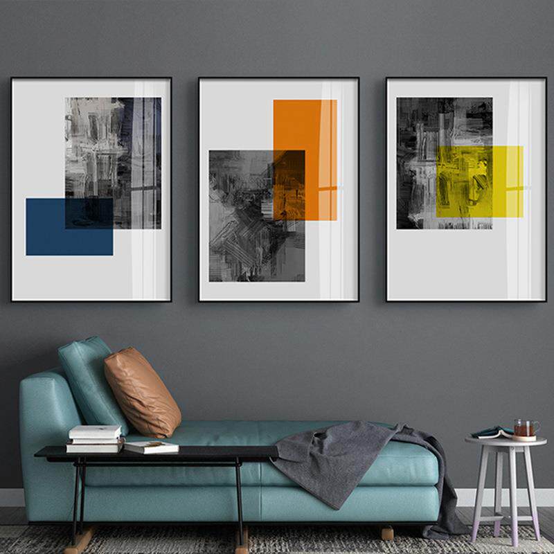 北欧客厅装饰画简约现代抽象风格卧室软装样板间挂画几何色块橙色