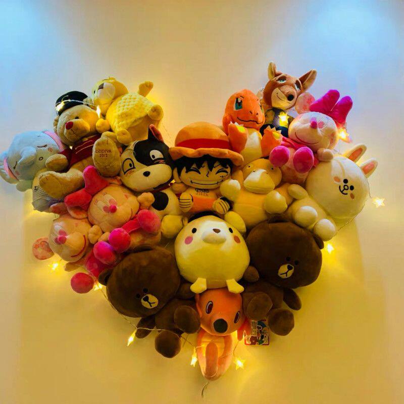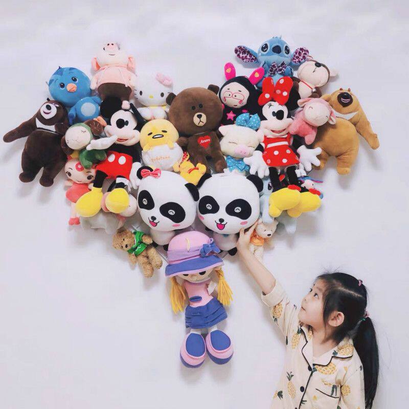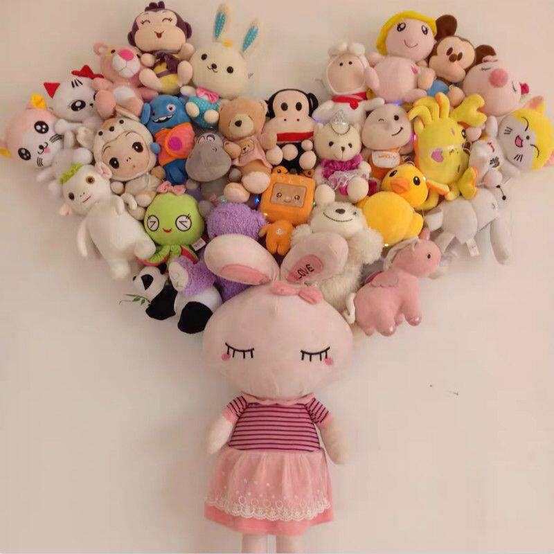 ins爱心娃娃墙上毛绒玩具网格收纳挂架公仔布偶置物架隔板免打孔