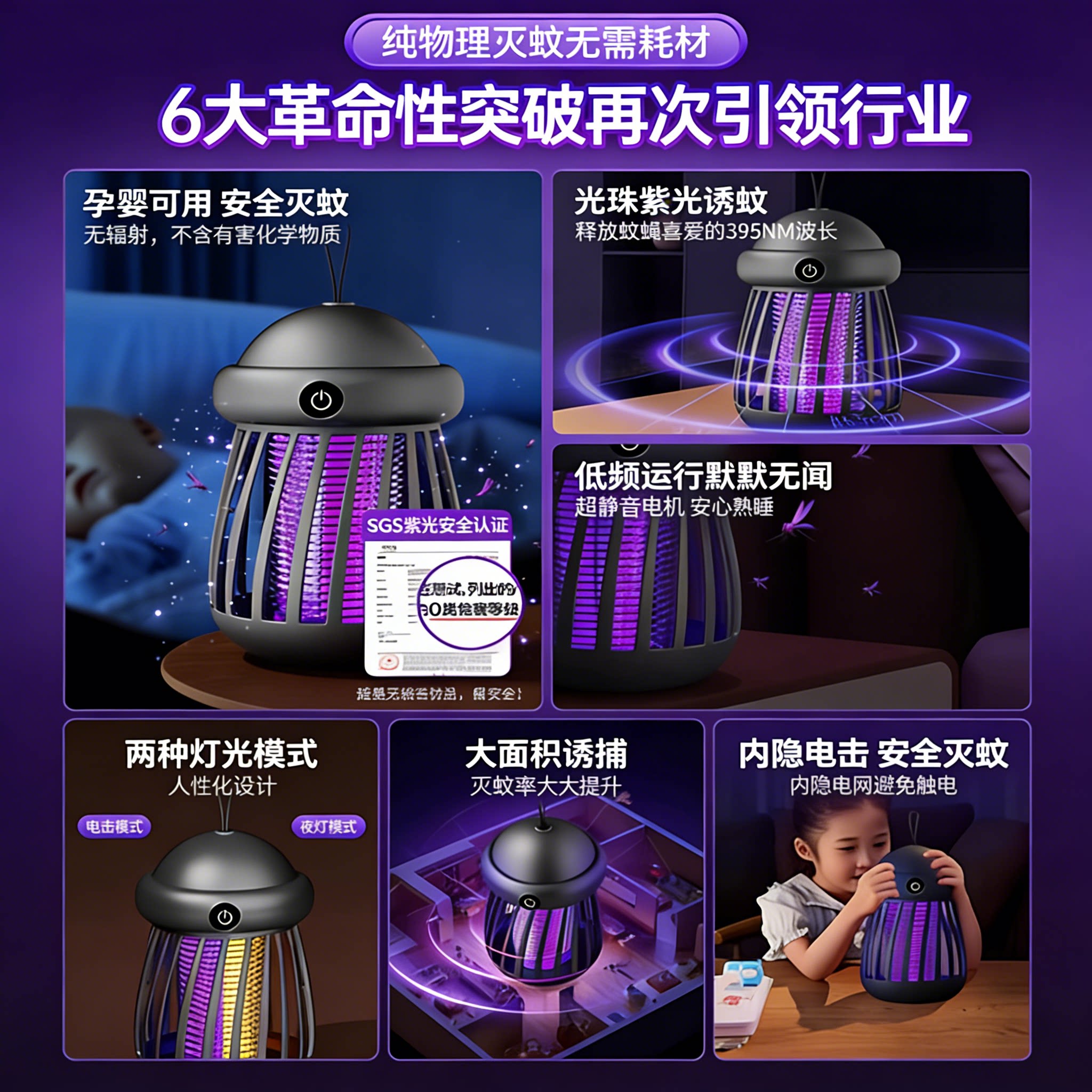驱蚊器电蚊灯家用物理灭蚊静音安全紫光立式壁挂驱蚊神器婴幼儿孕妇防蚊子室内餐厅蚊蝇蛾都能灭速杀快无影