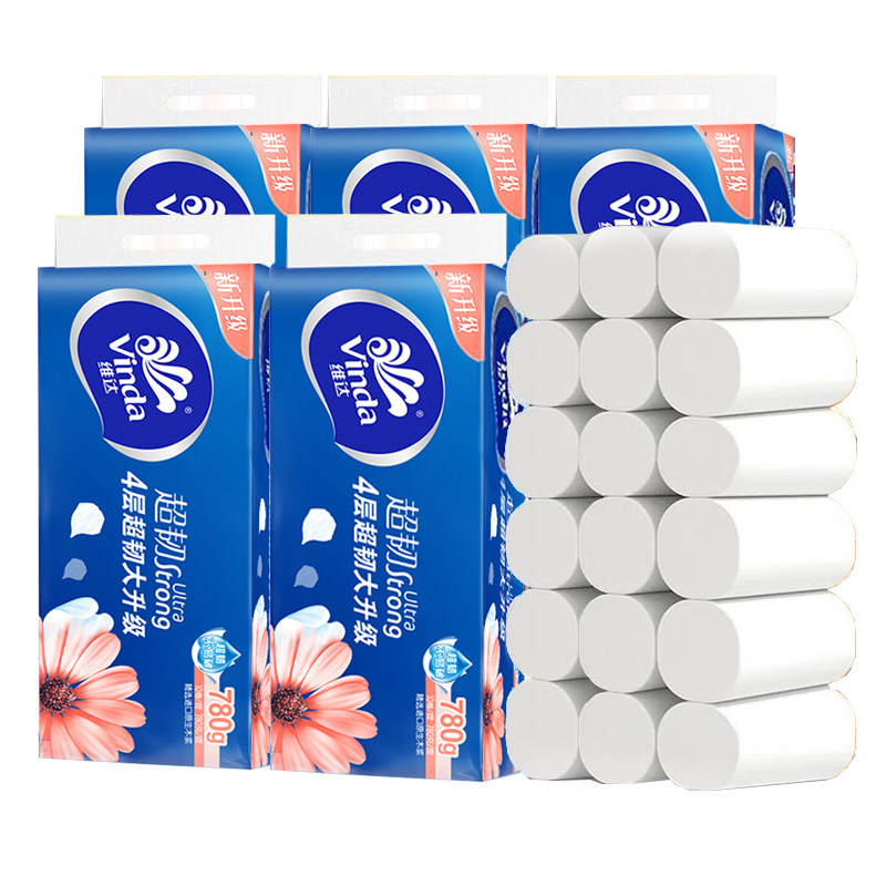 维达超韧无芯卫卷原生木浆4层加厚128克18卷实惠装单提家用卷纸