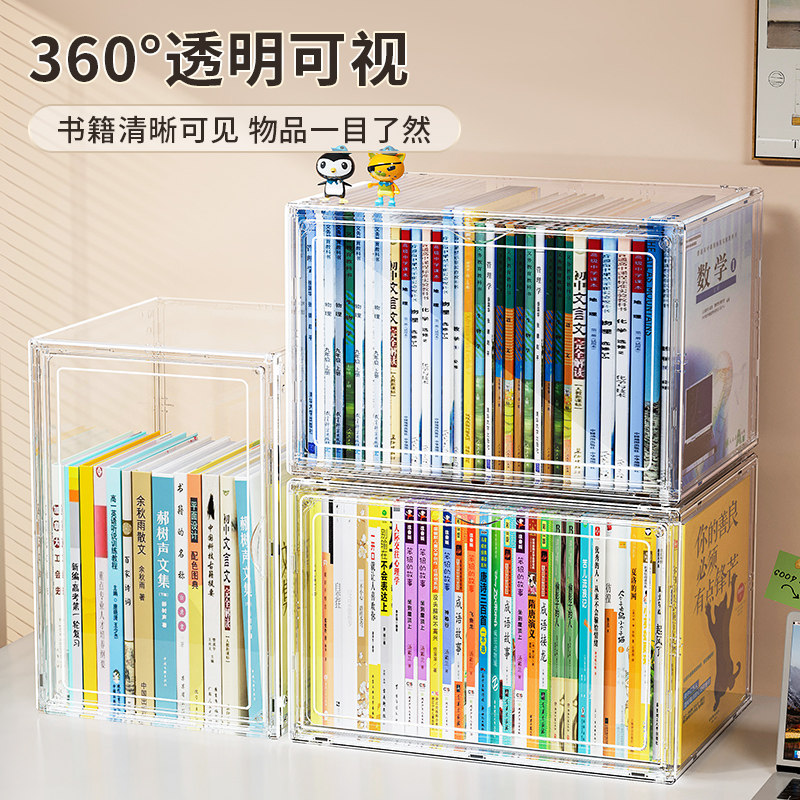书箱收纳箱学生教室装书书籍书本收纳盒储物箱大容量透明整理箱子