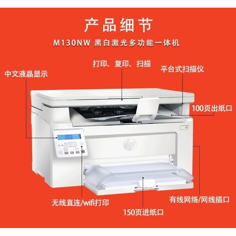 HP132黑白激光打印一体机多功能打印机证件复印扫描传真手机打印