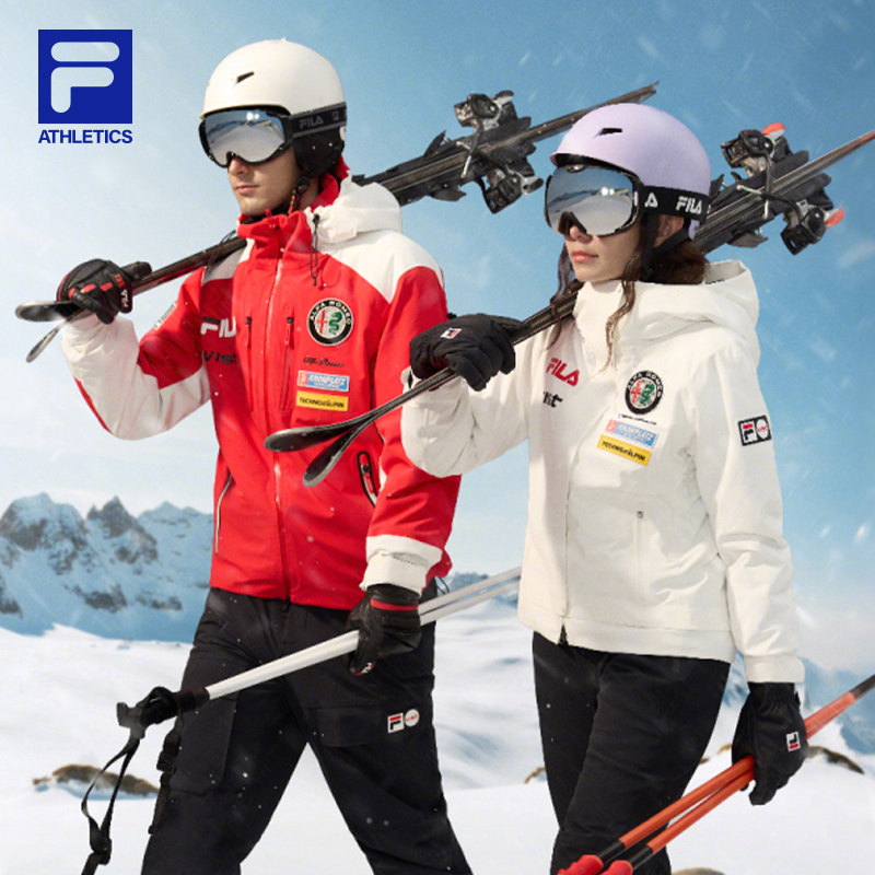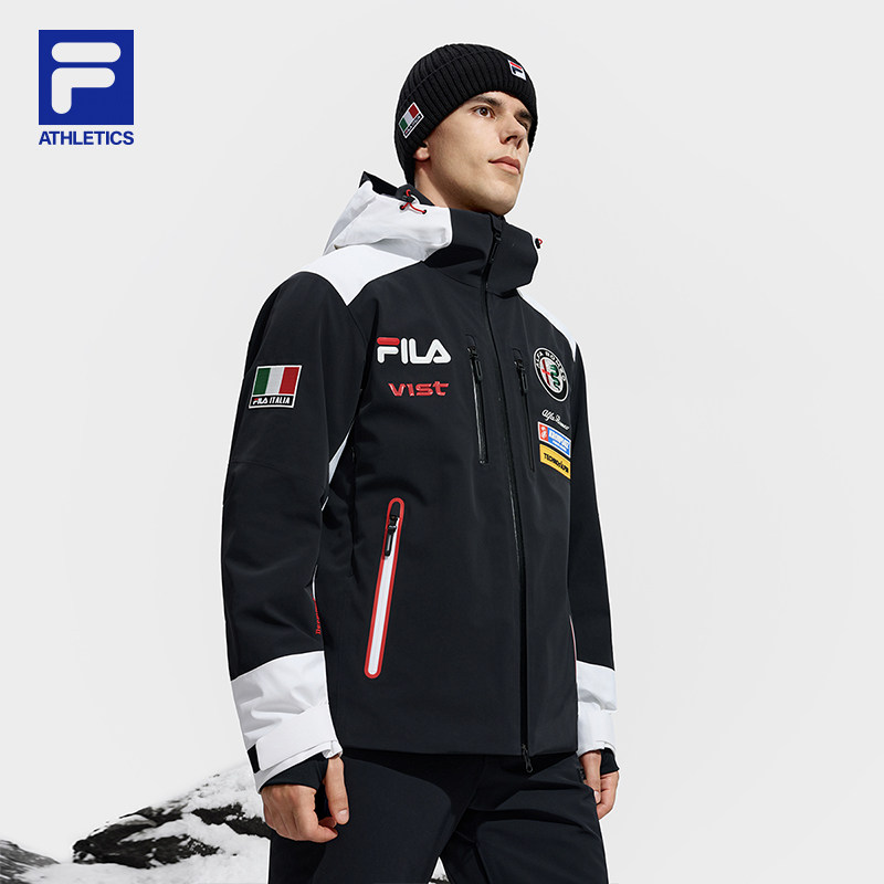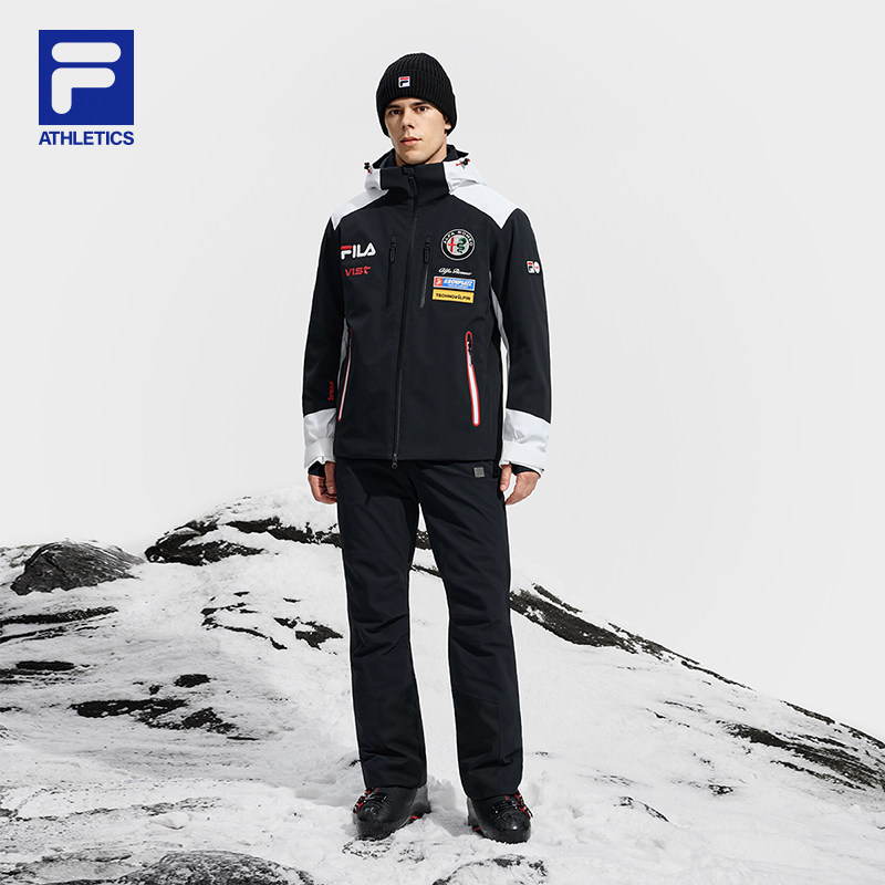 FILA斐乐官方男士滑雪服2025冬季新款运动基础拼色连帽棉服外套