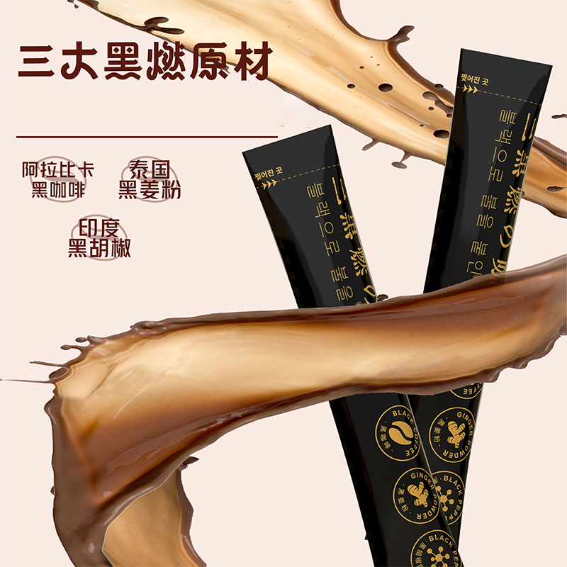 BoserMcark三黑燃の咖啡左旋肉碱黑咖黑姜黑胡椒速溶现磨固体饮料
