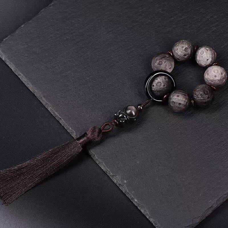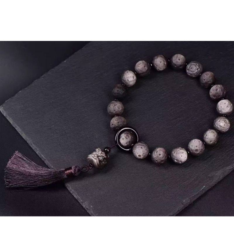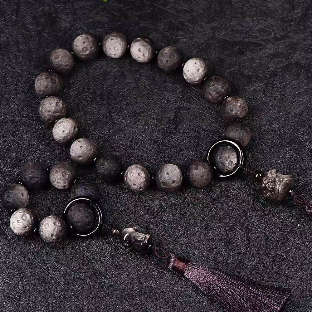 lisv天然银曜石星球珠手串手链网红同款月坑太空人醒狮手持念珠