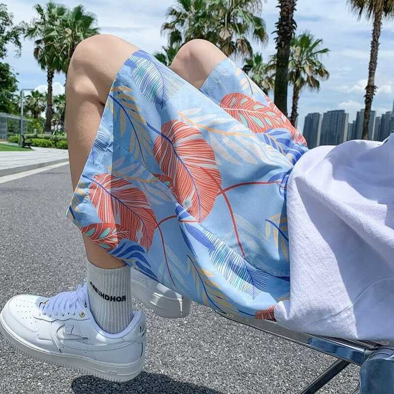 沙滩短裤男夏季薄款速干泳裤潮流印花大裤衩宽松睡裤休闲五分裤子