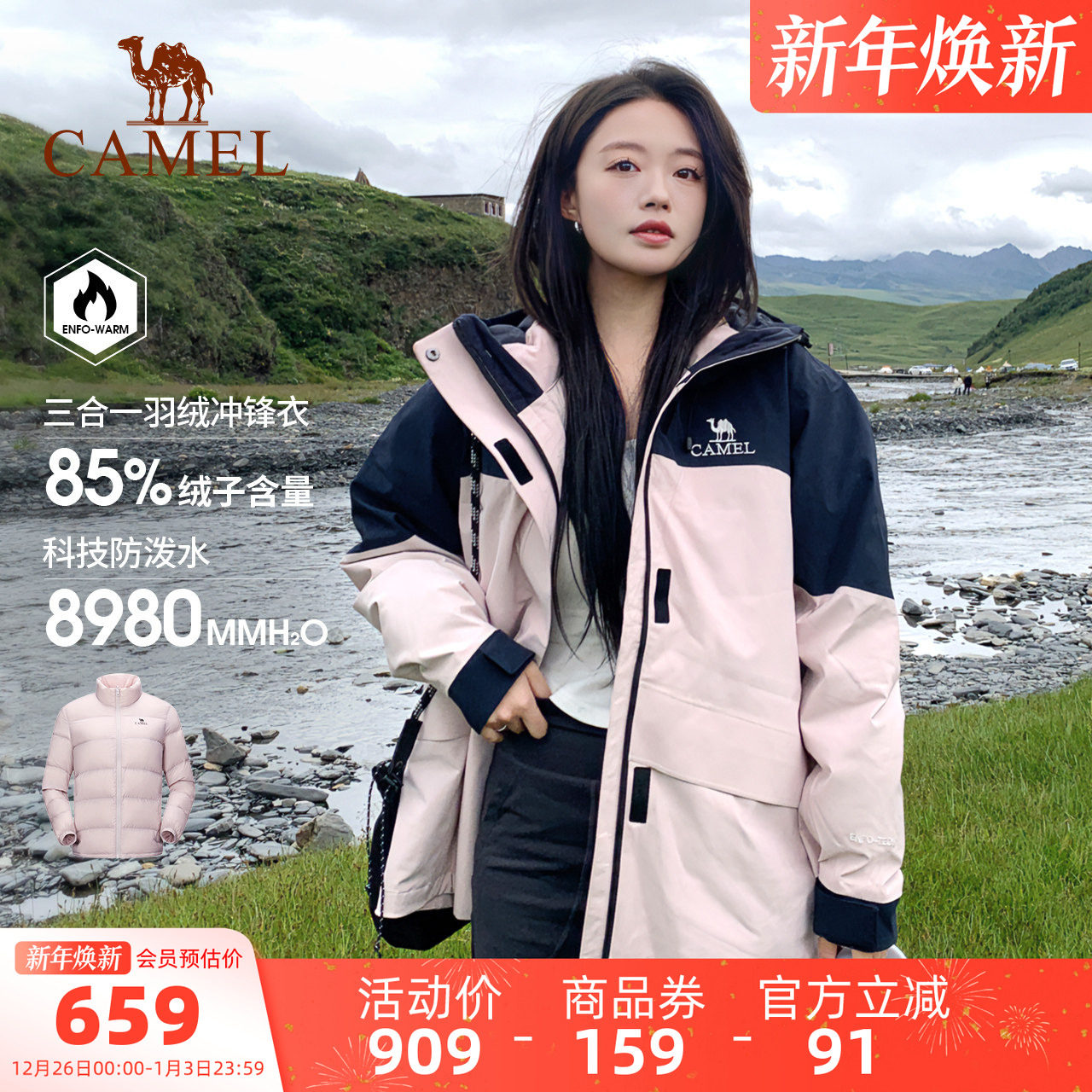 【三合一】骆驼女装三防羽绒服冲锋衣女2025秋冬新款羽绒内胆外套