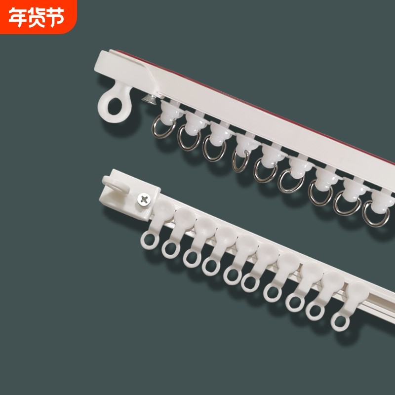 窗帘轨道免打孔滑轨侧装顶装自粘静音超薄导轨配件杆粘轨滑道滑轮