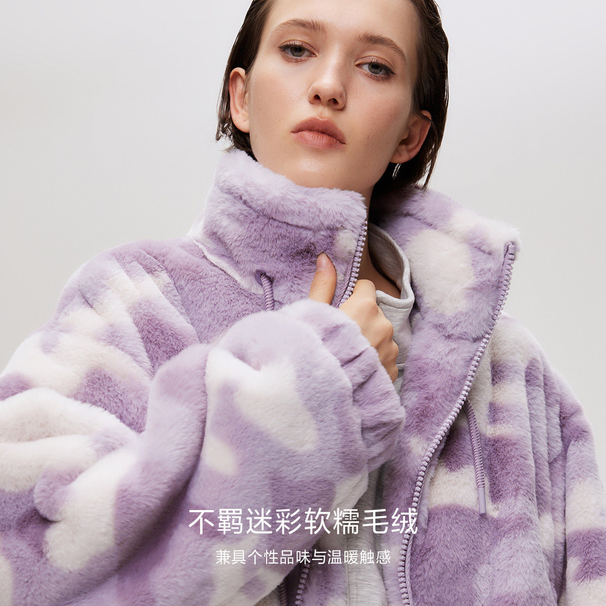 毛绒短款外套,不规则个性迷彩
