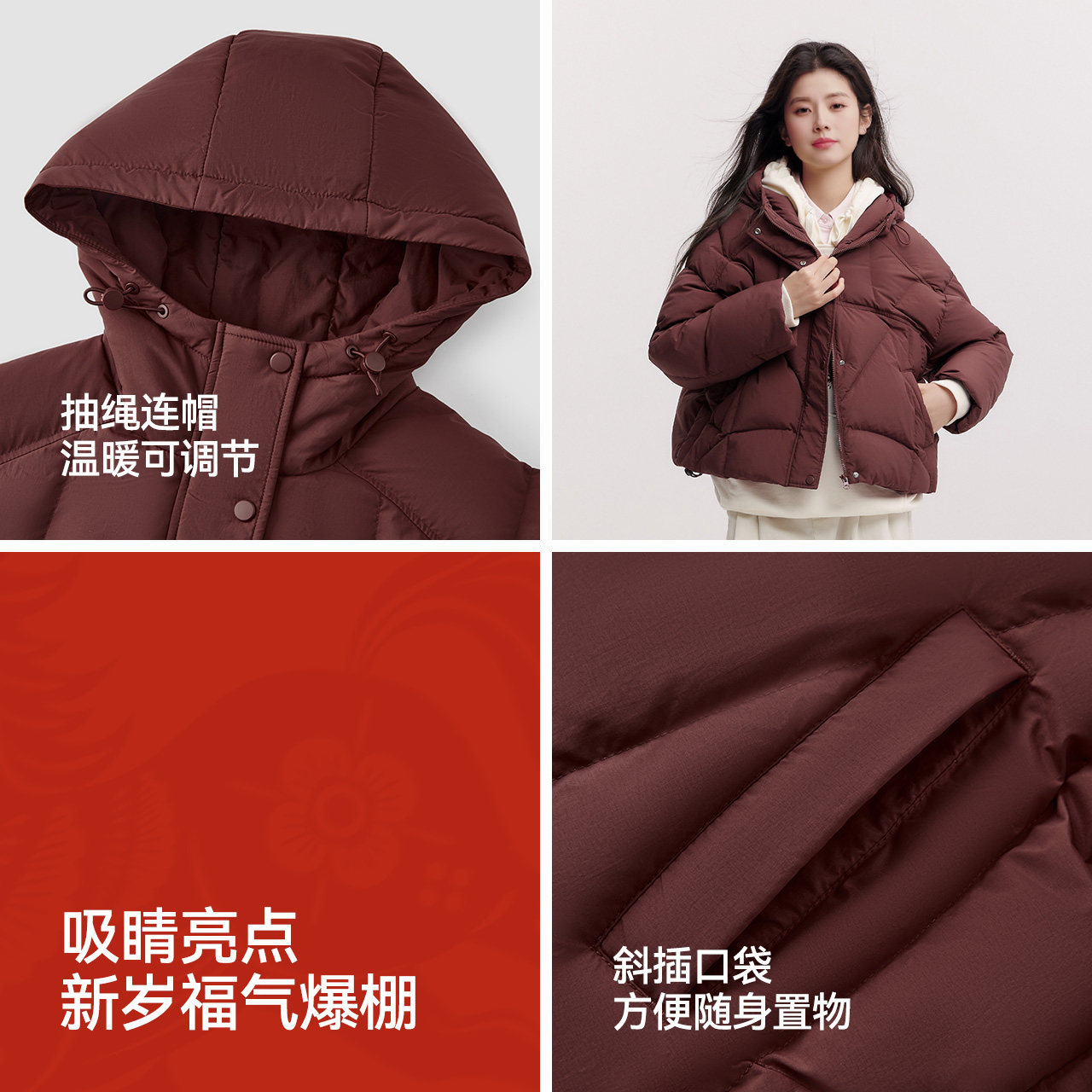 鸭鸭2025秋冬新款立领短款羽绒服小个子女冬多巴胺连帽可拆帽外套