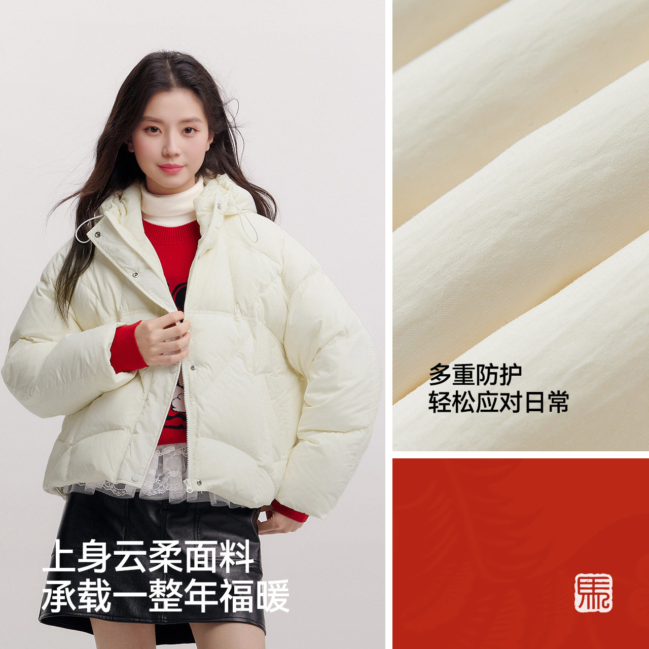 森马羽绒服女春季90绒子三防肌理oversize连帽衣服设计感慵懒外套