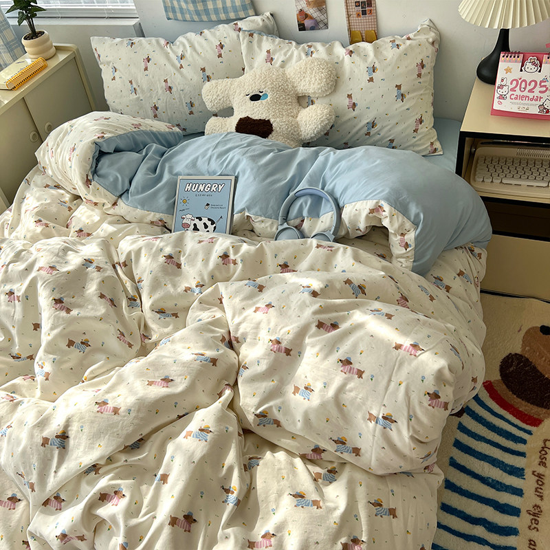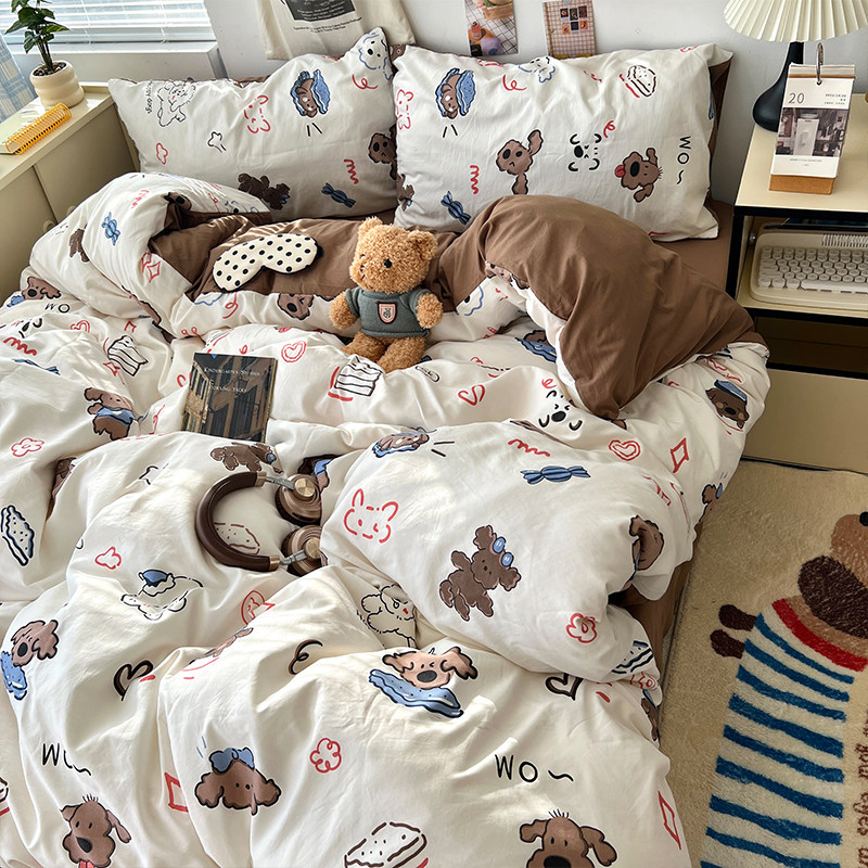 TeenieWeenie全棉水洗棉四件套100纯棉被套床单床笠款床上三件套4