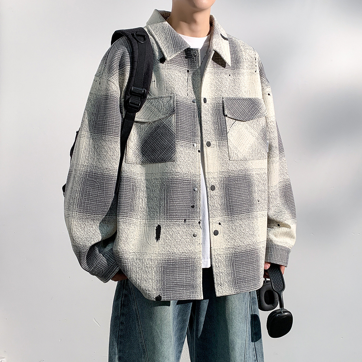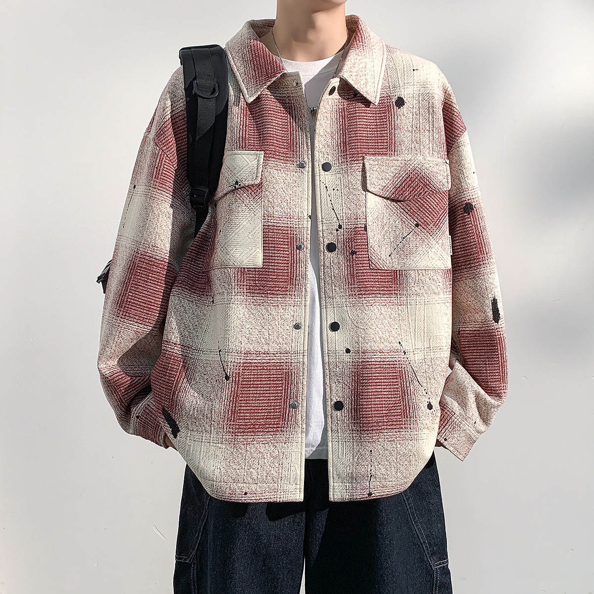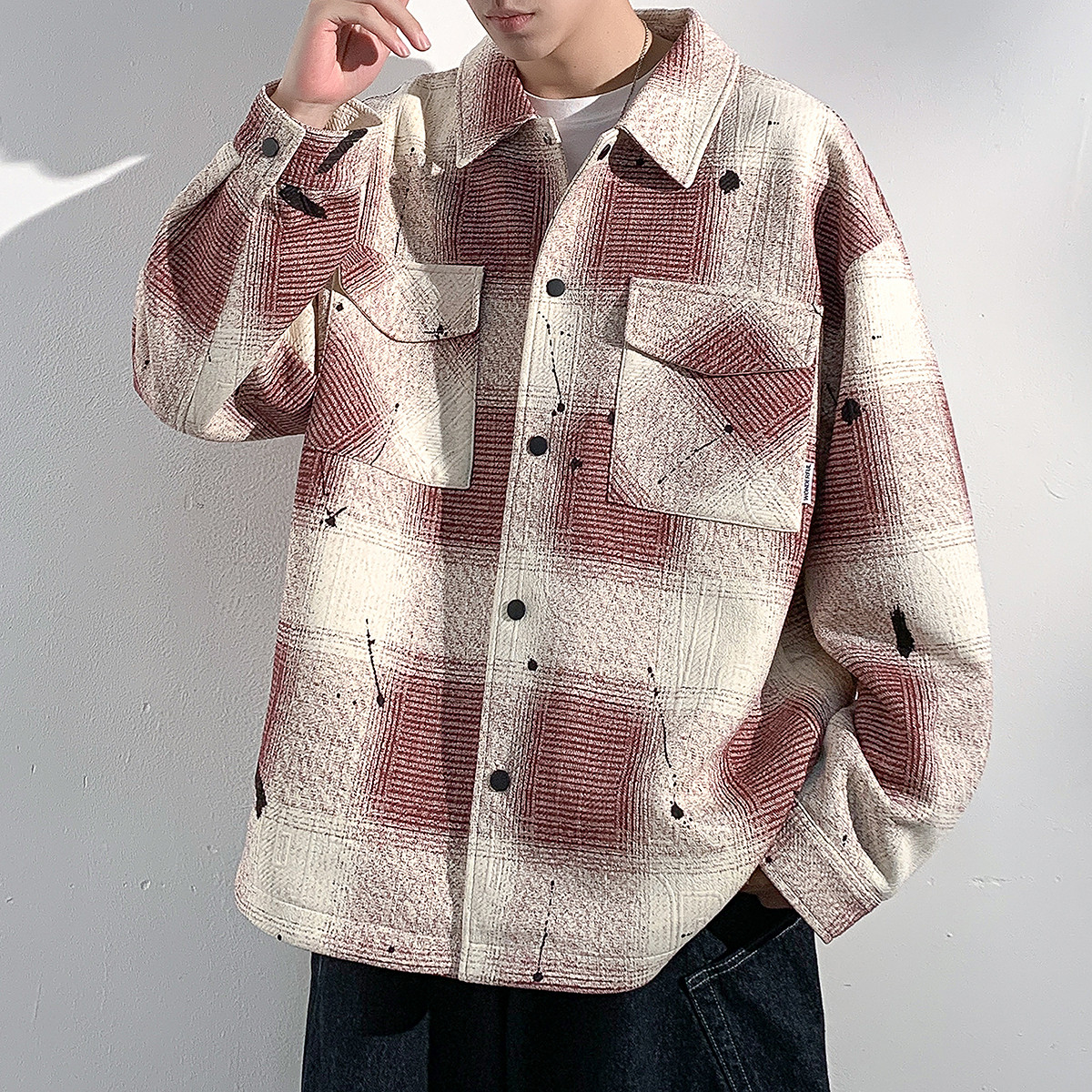 唐狮秋季新款格子外套男休闲港风高级防风男士夹克今年流行爆款TU