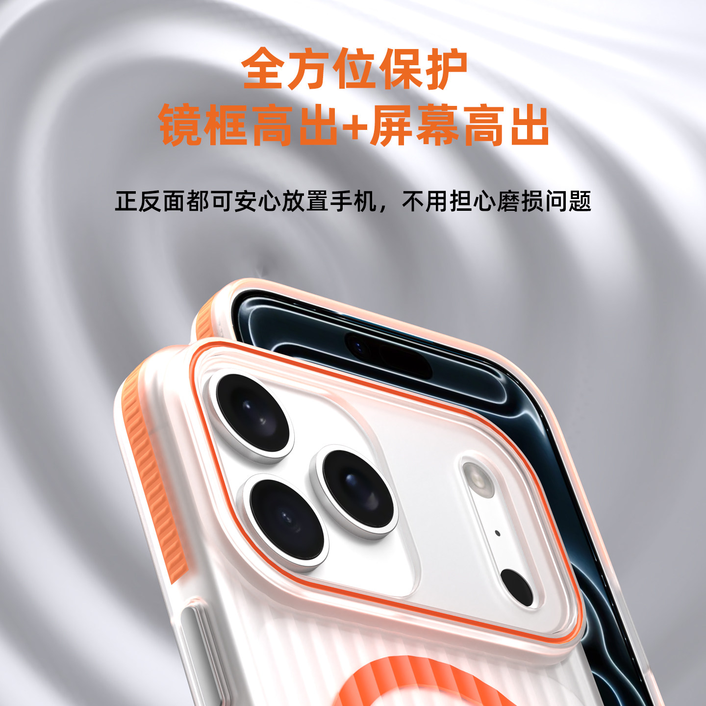 适用苹果17手机壳磨砂iPhone 17Pro半透明超薄17pm防摔全包Magsafe磁吸Max瓦楞行李箱纹理新款高级感硬保护套