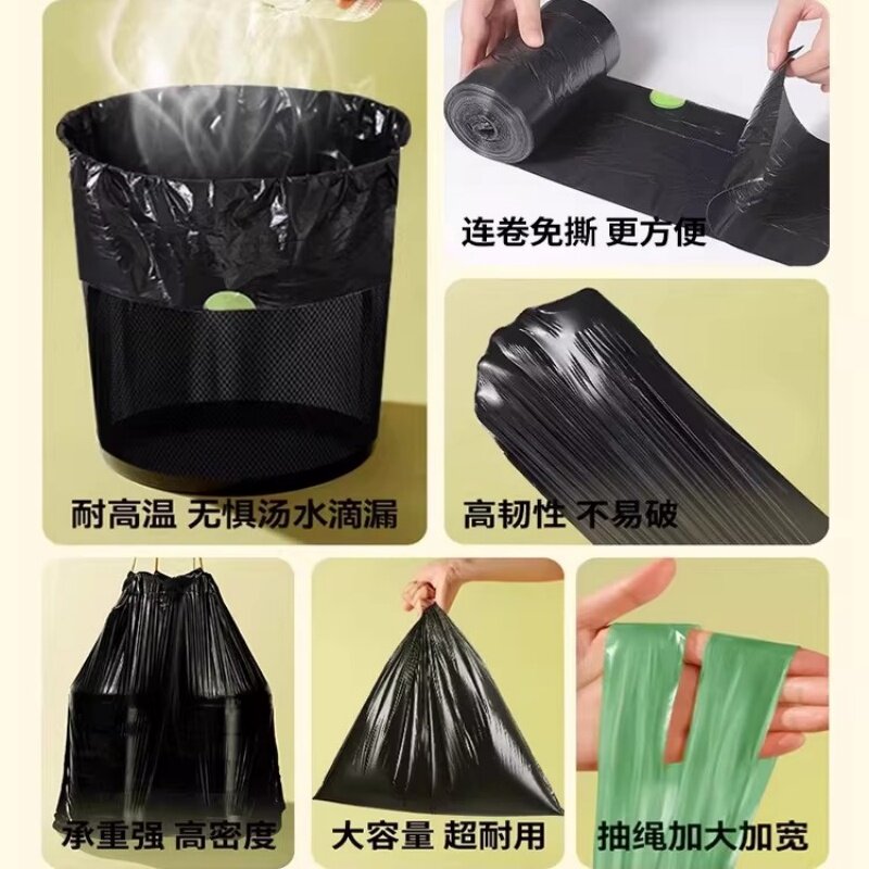 抽绳垃圾袋家用手提式加厚中大号商用批发实惠装厨房黑色塑料袋子