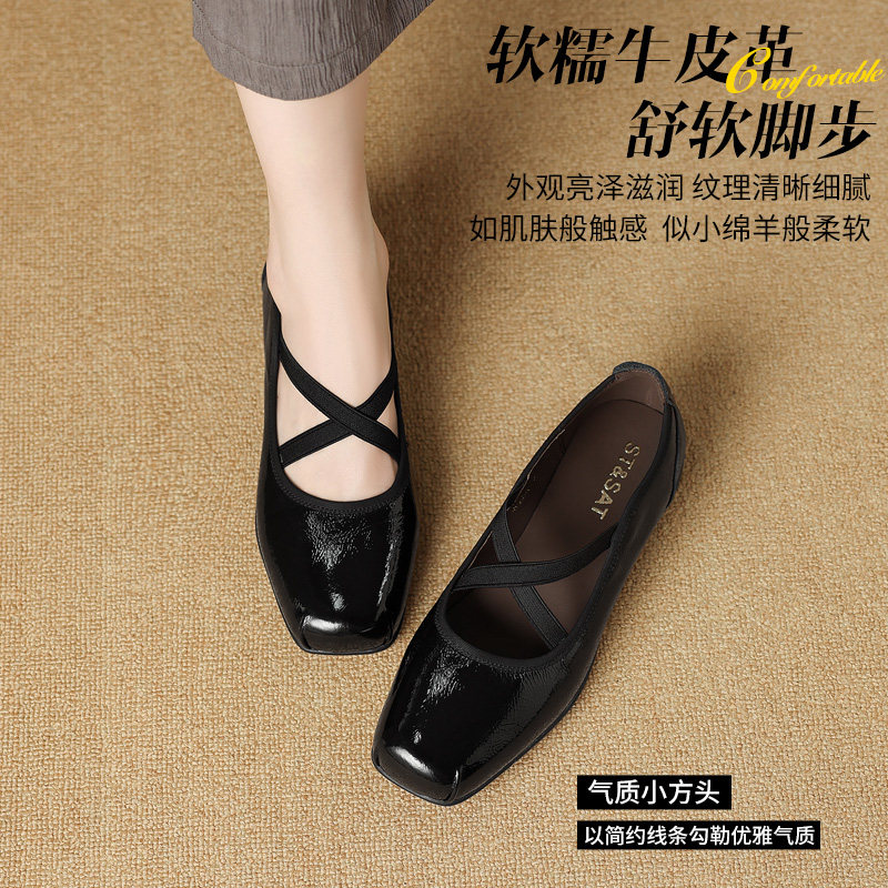 星期六女鞋法式复古平头乐福鞋2026新款春季头层牛皮真皮妈妈鞋子
