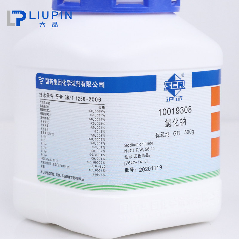 氯化钠 优级纯 NaCl GR 500g 沪试含量99.8%无色结晶盐雾实验工业盐非食用盐国药沪试化学试剂