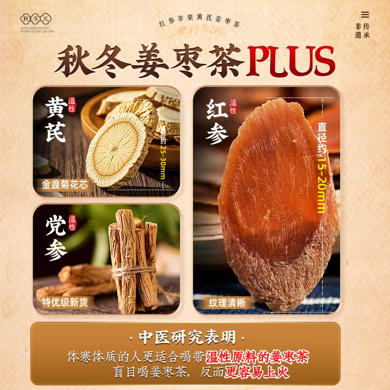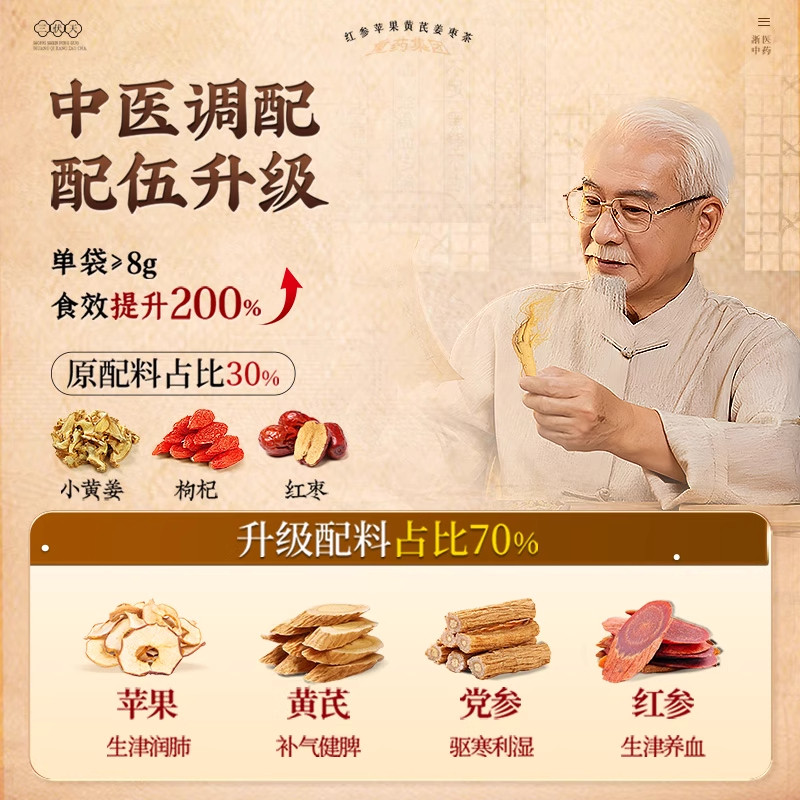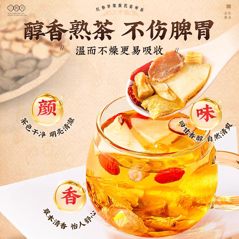 浙中医人参苹果黄芪红枣枸杞姜枣茶女生补气养血调理不足养生茶包
