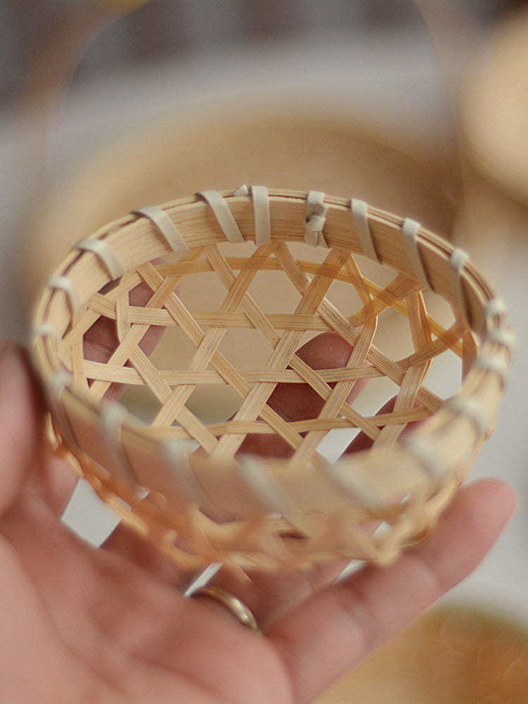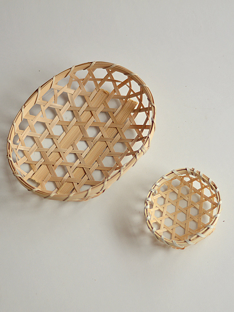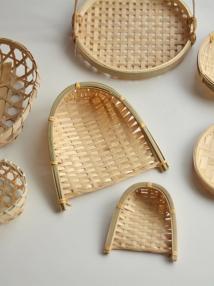 迷你竹编竹制品筛子簸箕竹匾托盘幼儿园手工装饰古风拍照摄影道具
