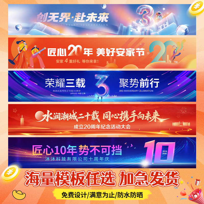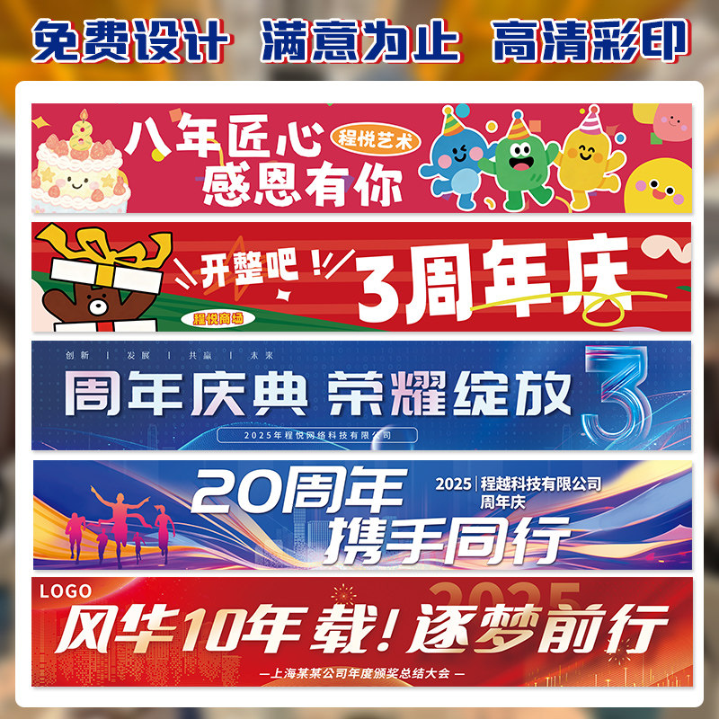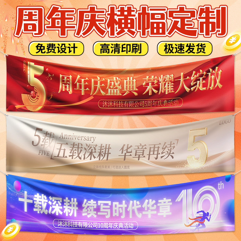 周年庆横幅定制公司会场开门红标语手拉条装饰设计开业大吉典礼活动氛围感旗帜布置企业开业庆典彩色条幅定做