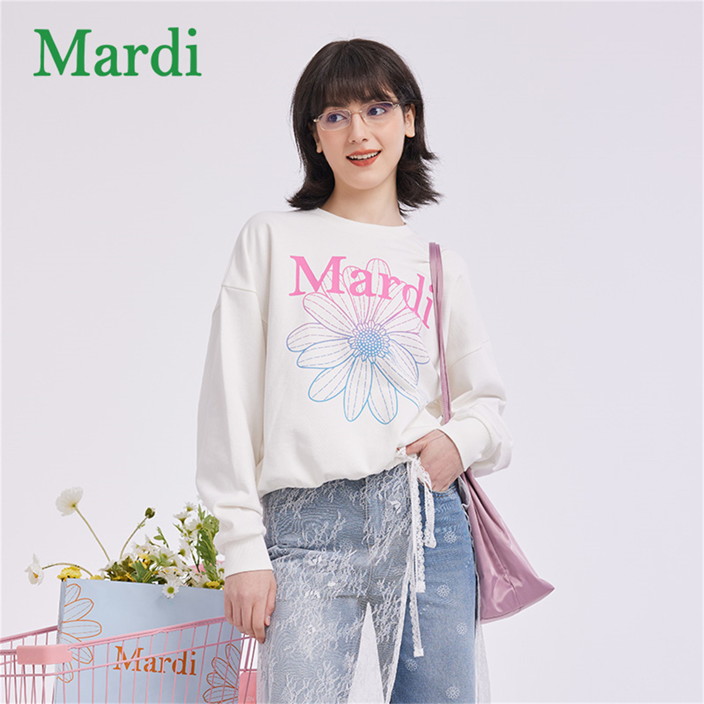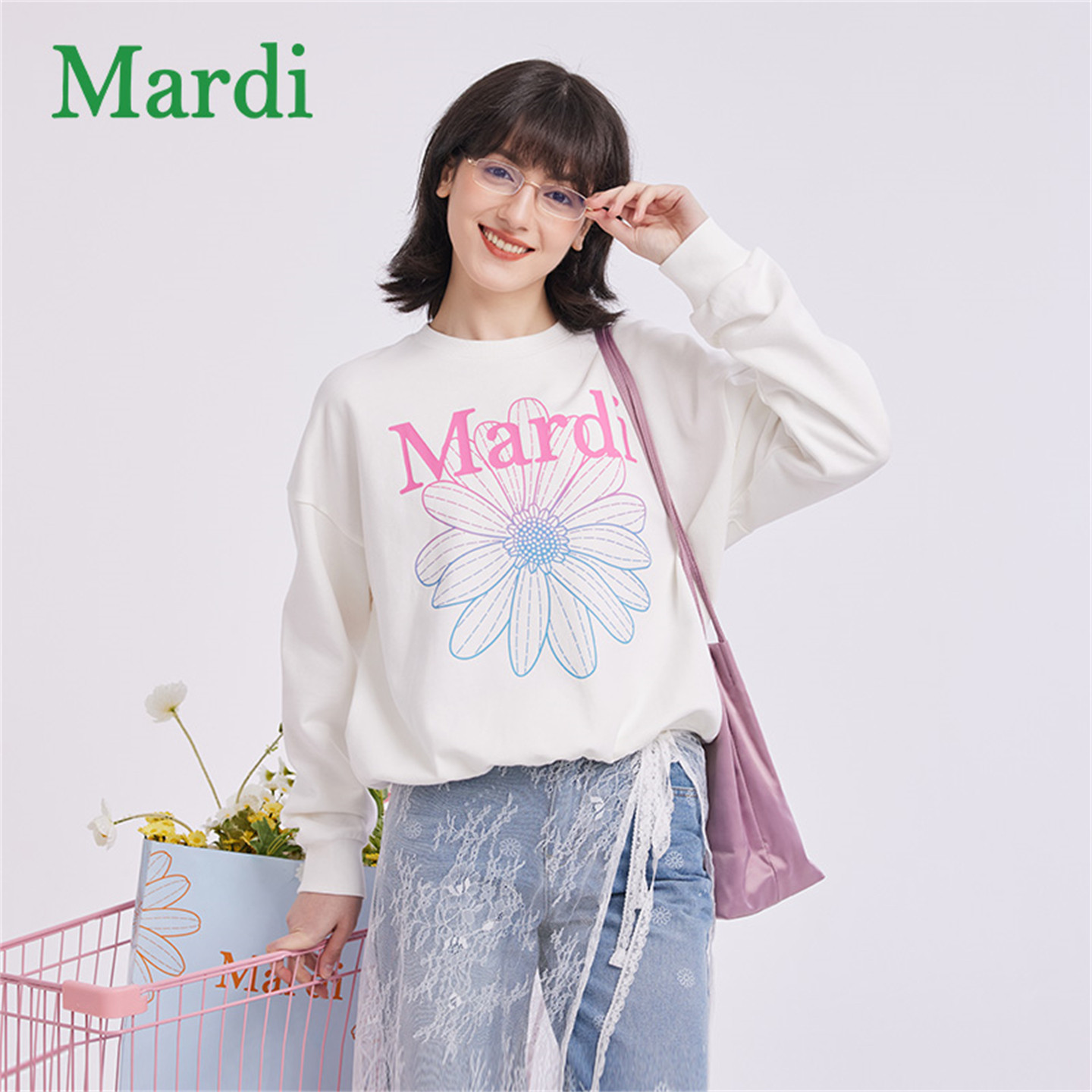 MARDI2026春季新款小雏菊渐变时尚女款卫衣圆领宽松休闲百搭上衣