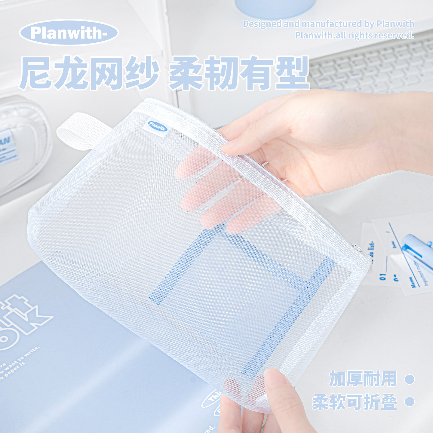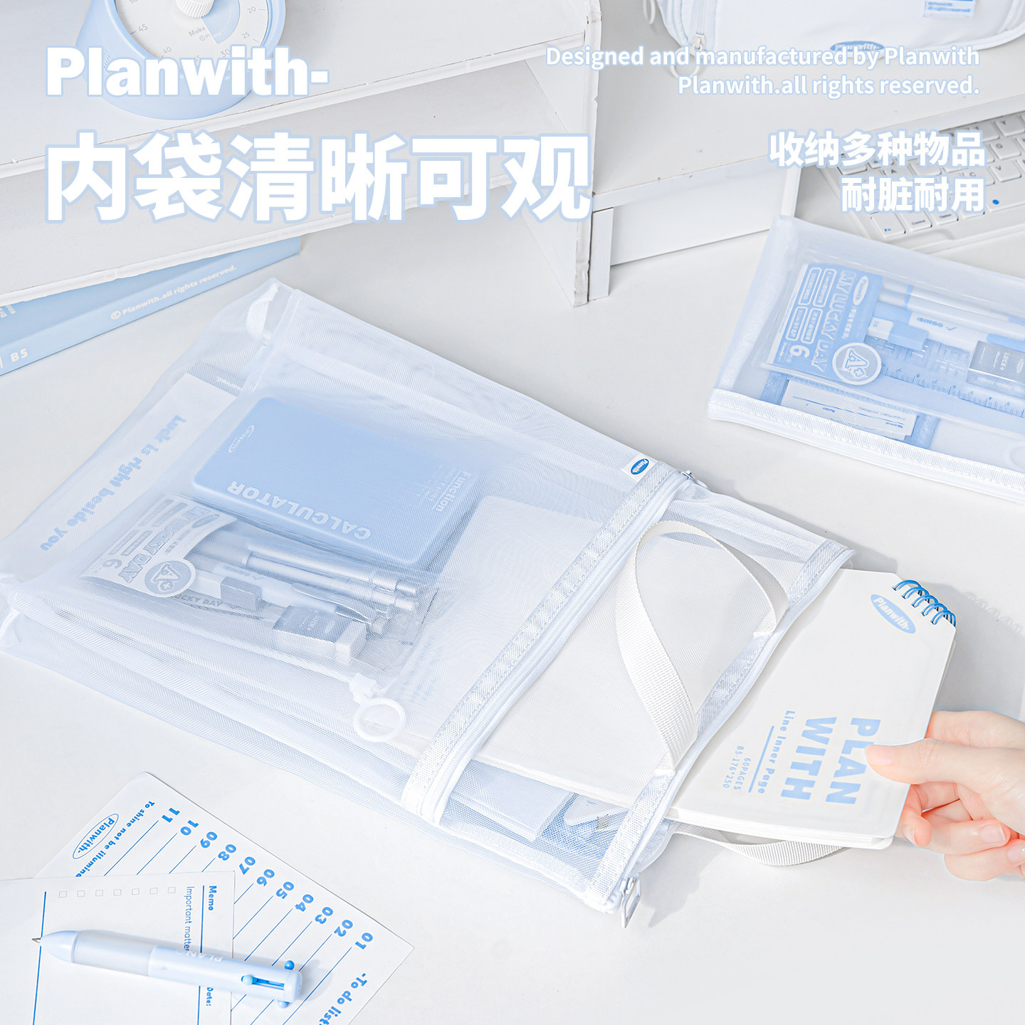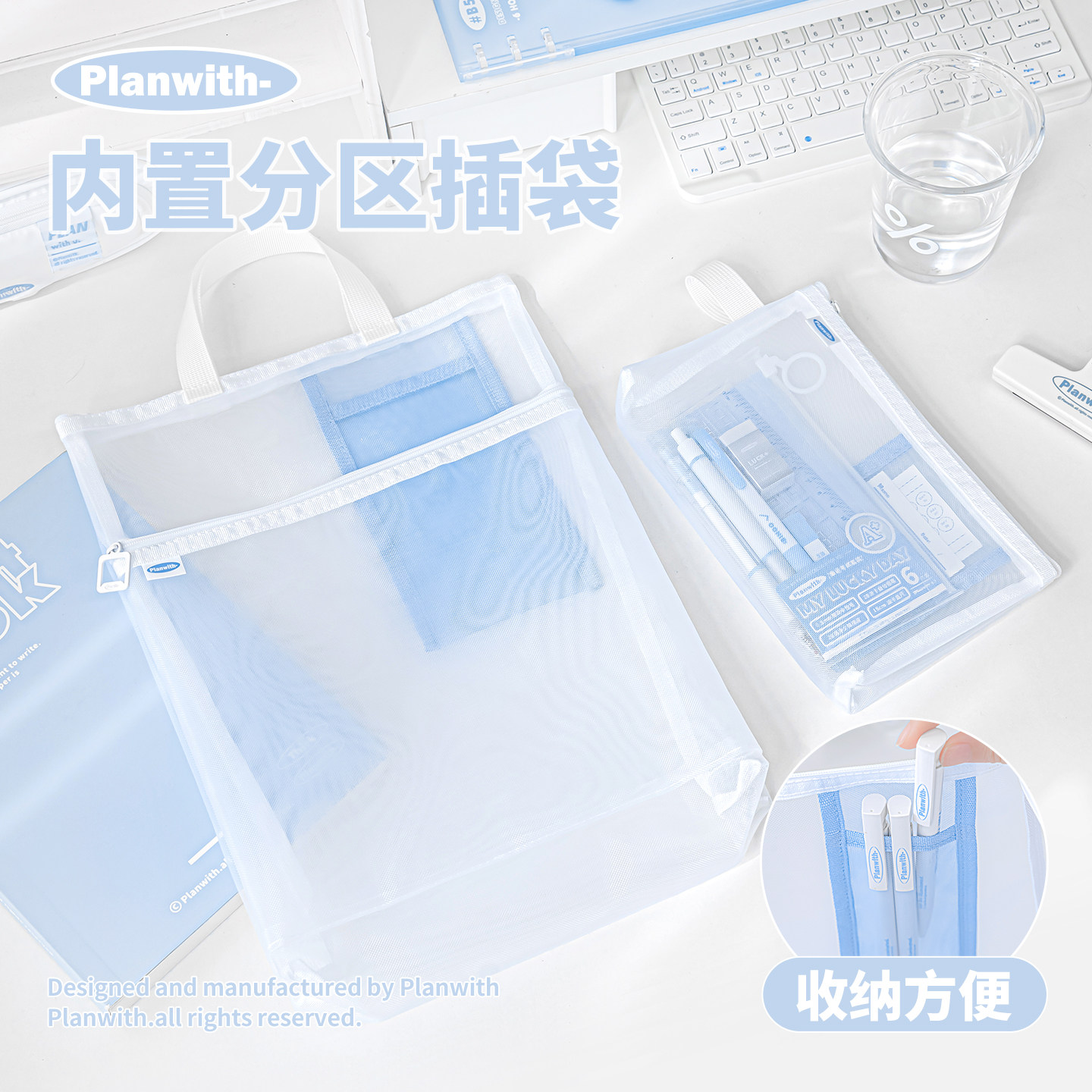 透明网纱分区文件袋大容量简约加厚A4手提袋中小学生试卷书本整理分类收纳袋补习袋新款办公资料袋考试用笔袋