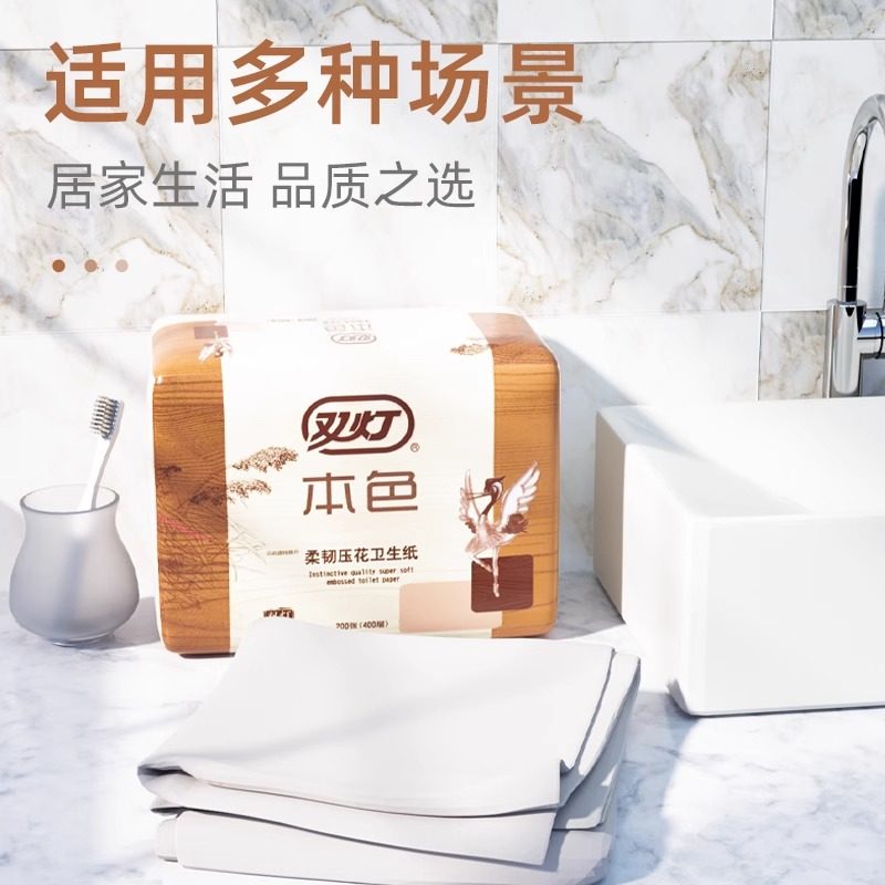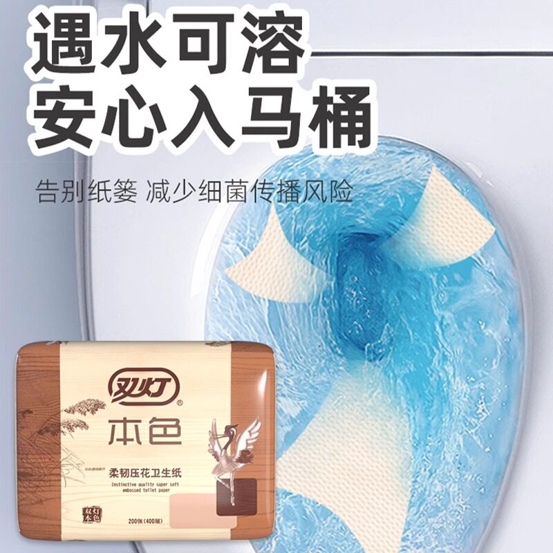 双灯本色压花卫生纸厕纸200张400层10包草纸家用平板纸官方旗舰店