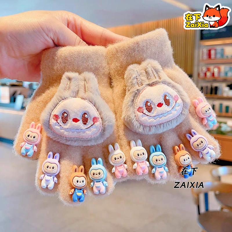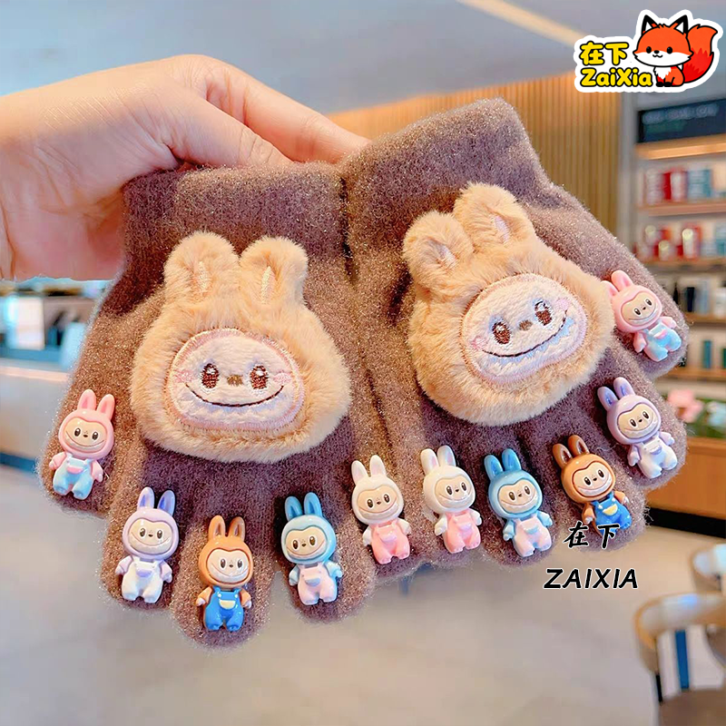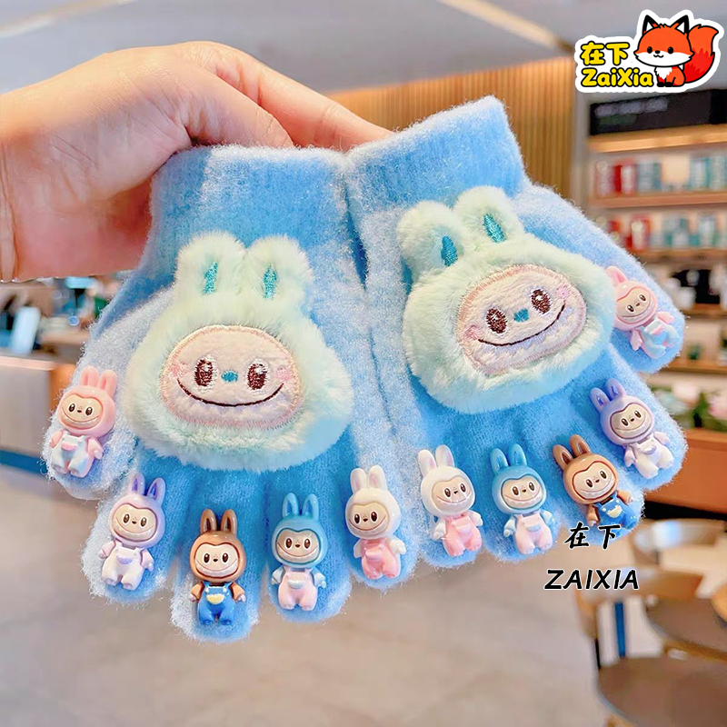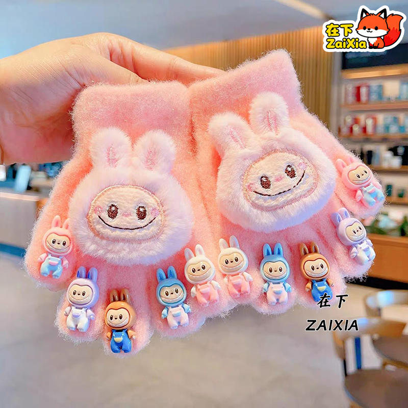拉布儿童秋冬手套2025新款女童五指全指套男童宝宝毛绒保暖防寒
