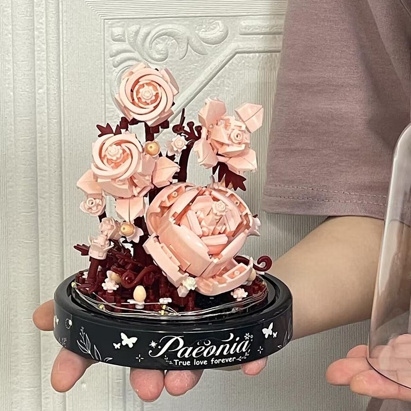 永生玫瑰花束积木鲜花植物盆栽拼装玩具手工diy女生系列生日礼物