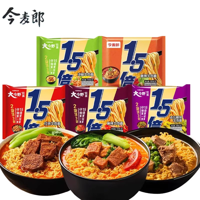 今麦郎1.5倍红烧牛肉面速食方便面袋装泡面拉面酸辣整箱板面夜宵