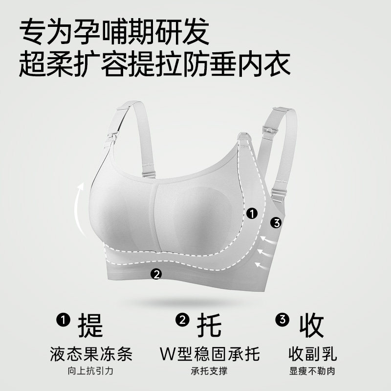 润微孕妇哺乳内衣大胸显小聚拢防下垂产后喂奶孕期专用7A抑菌文胸