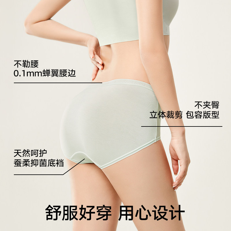 3件|蕉内银皮500E女士内裤无痕透气亲肤红真丝莫代尔三角裤大码女