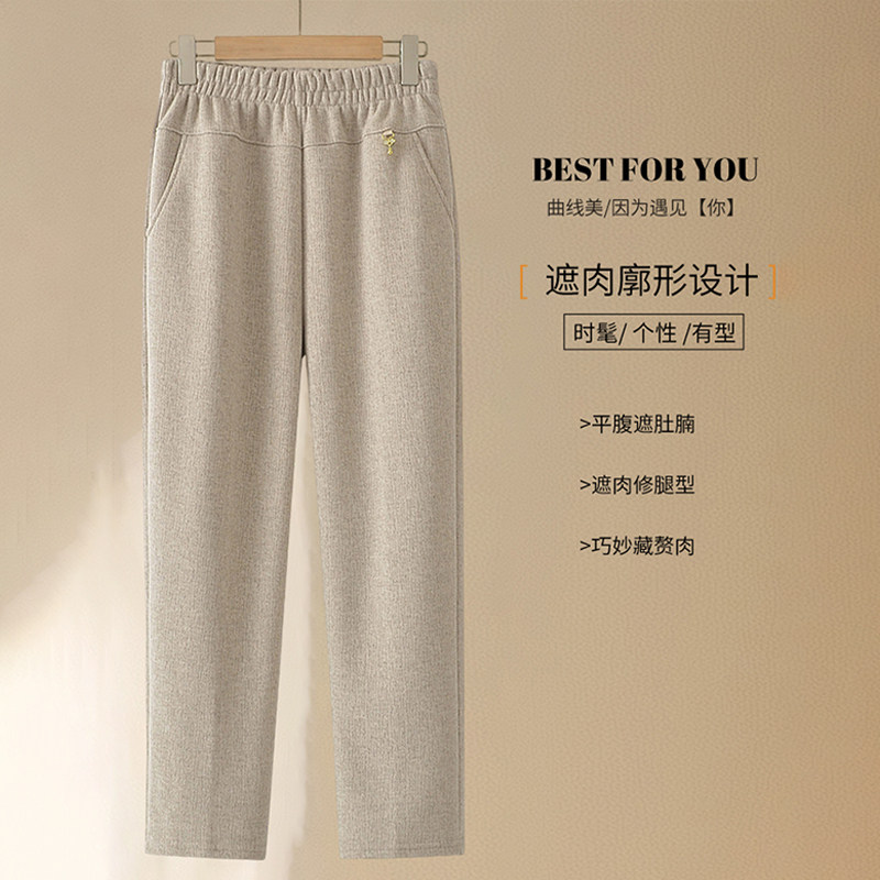 妈妈裤子春秋款松紧高腰弹力中老年女裤宽松大码直筒奶奶加绒长裤