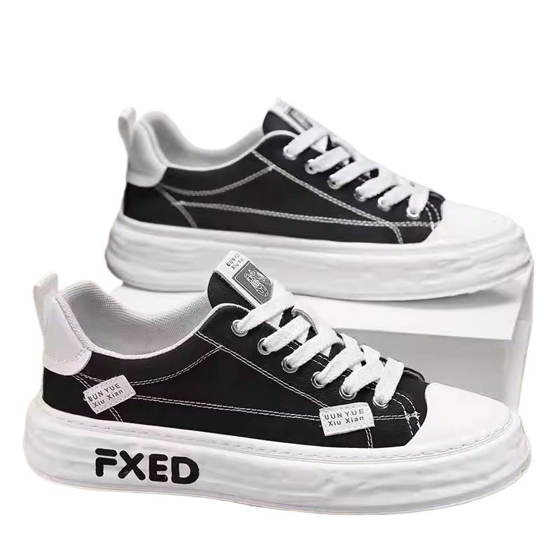 春季帆布男鞋春季透气2026新款学生运动休闲平底板鞋黑色布鞋潮鞋