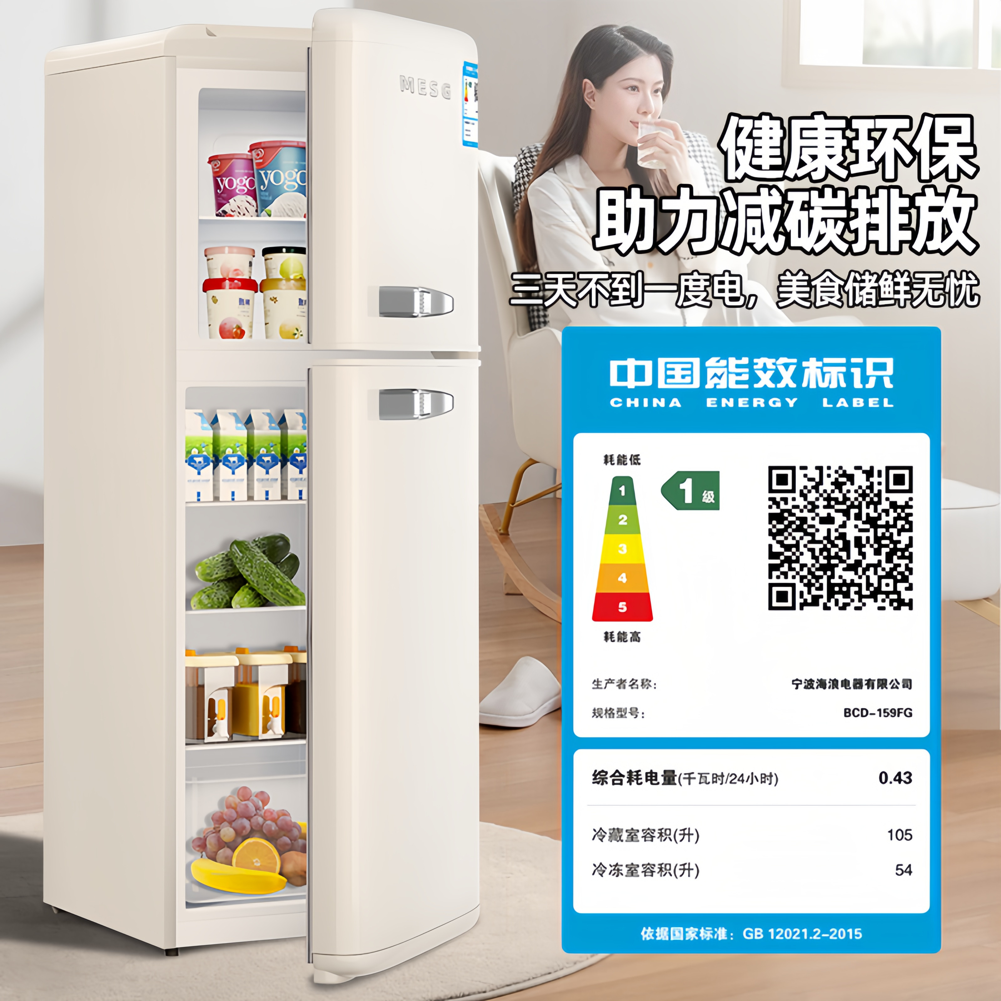 德国MESG复古冰箱高颜值家用小型一级能效双门中小户型冷藏冷冻柜