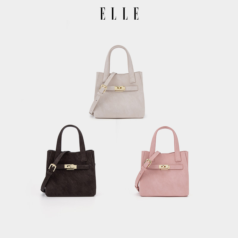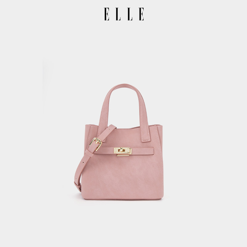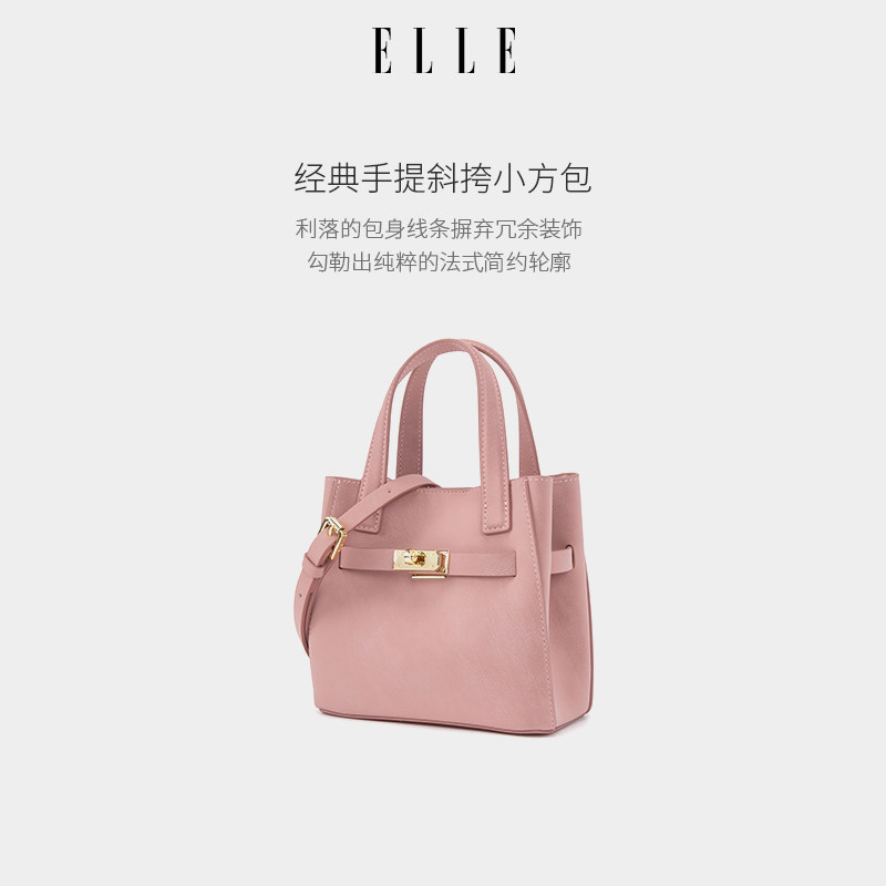 ELLE女包2026新款包包复古简约小方包手提粉色小包斜挎包轻奢高级