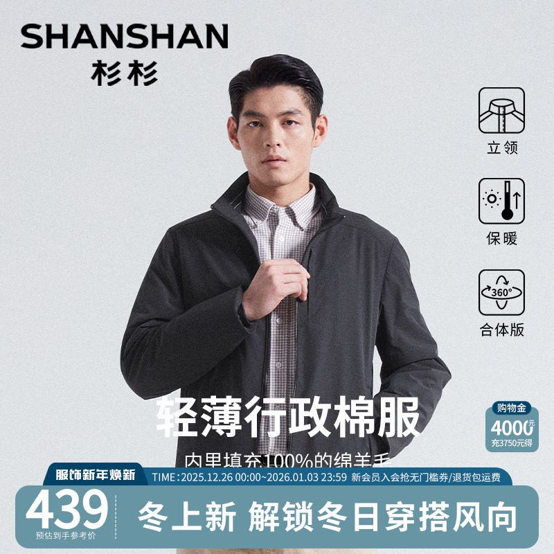 杉杉男士新款外套冬装轻薄行政棉服夹克爸爸装冬季绵羊毛保暖棉袄