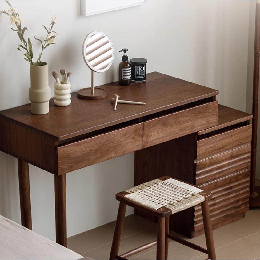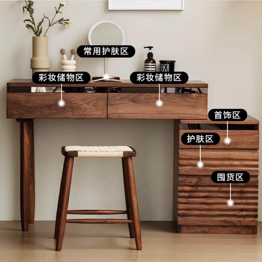 北欧全实木化妆桌原木小户型可伸缩床头柜黑胡桃木斗柜梳妆台一体