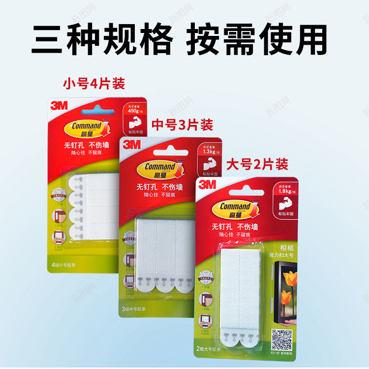 3M高曼魔力扣无痕照片相框固定上婚纱照反复粘接魔术贴蘑菇头卧室