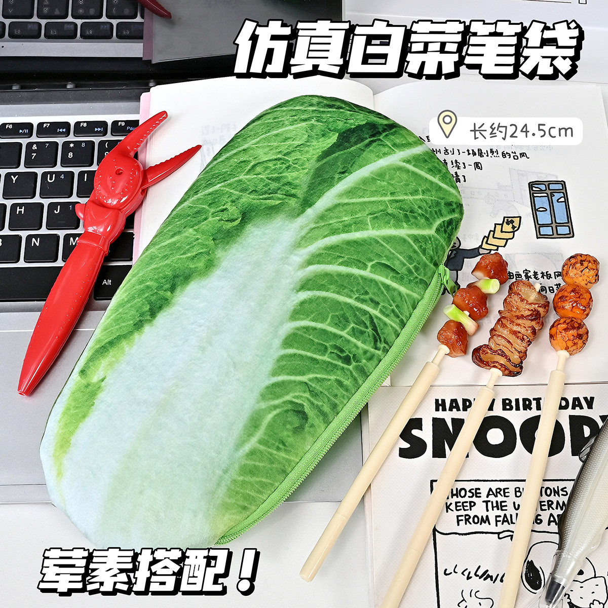 仿真蔬菜胡萝卜笔袋五花肉大容量搞怪创意印花毛绒学生桌面整理小众文具收纳盒