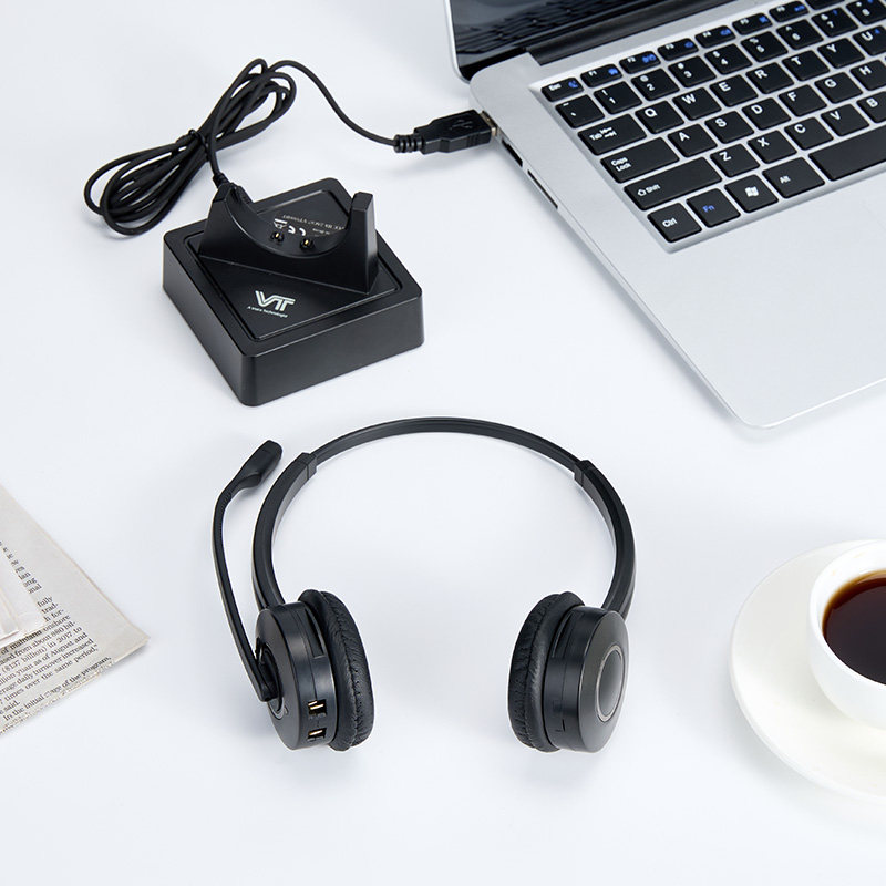 惟贝特VT9712无线办公耳机头戴式降噪话务耳麦会议视频耳机带底座