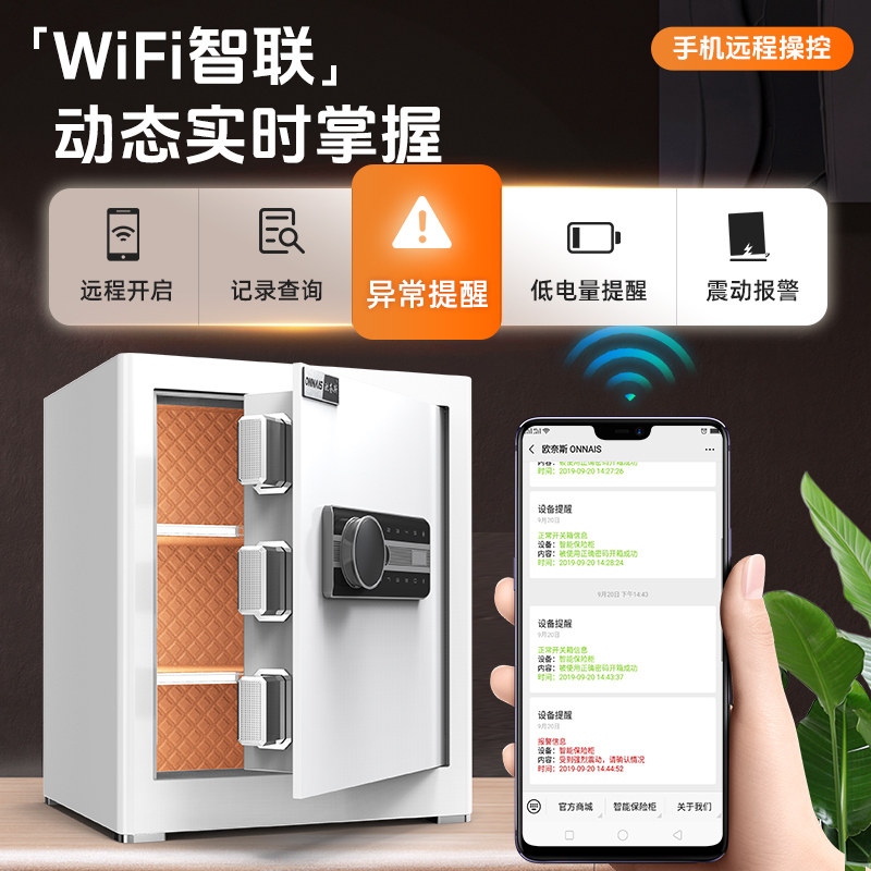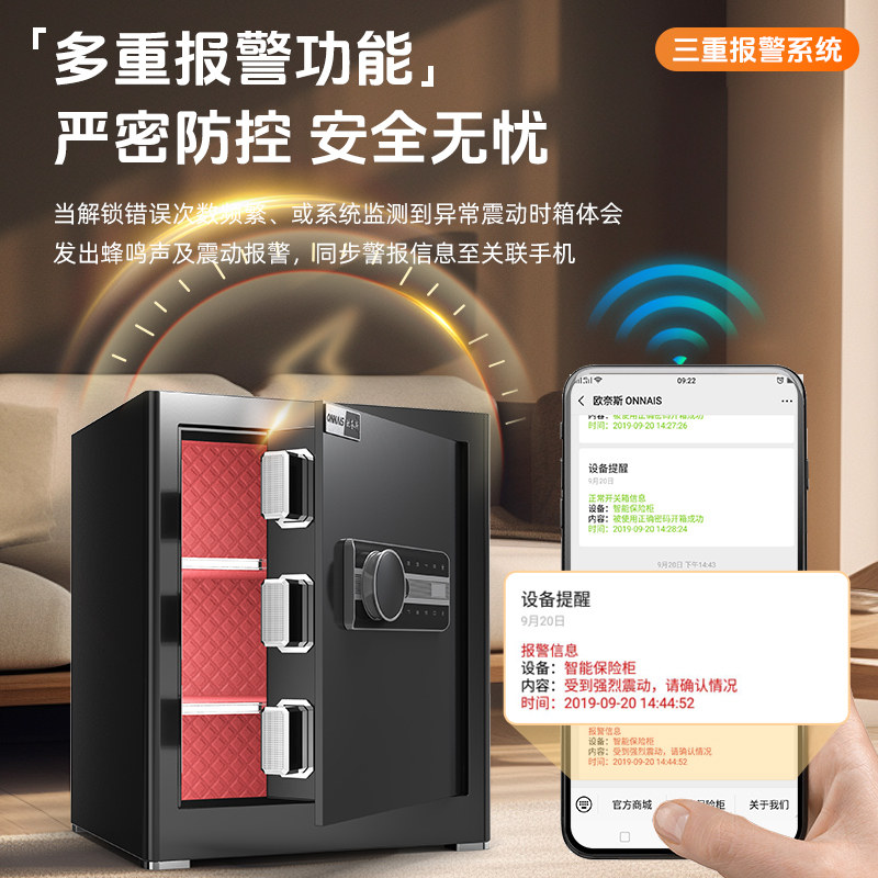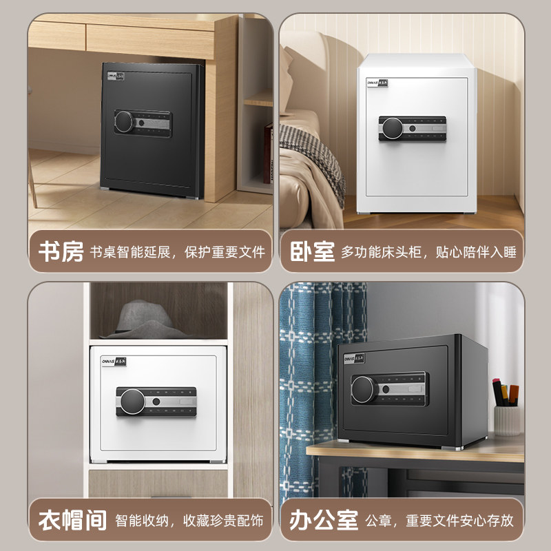 欧奈斯保险柜2026新款家用小型智能家用保险箱密码指纹手机智能防盗卧室床头迷你隐藏全钢保管箱嵌入式一体