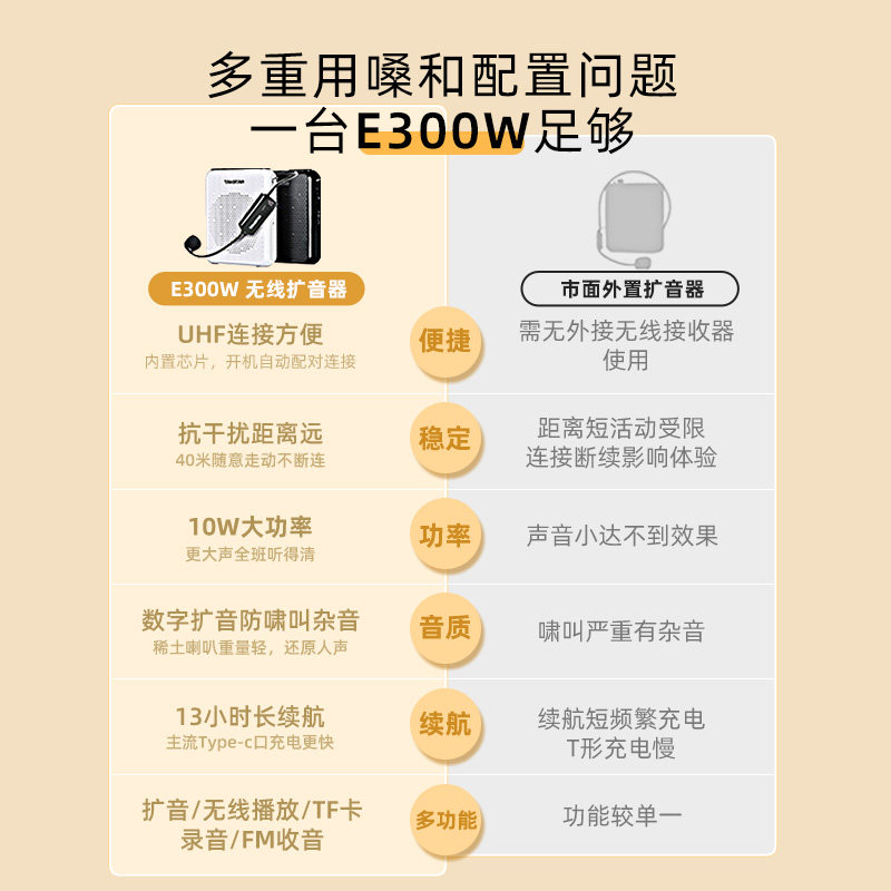 得胜E300W无线蓝牙小蜜蜂扩音器教师上讲课专用麦克风德胜喇叭机