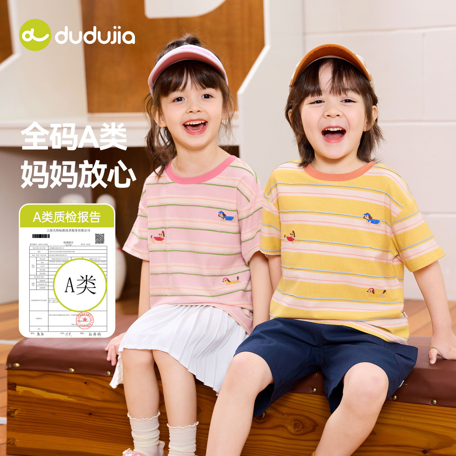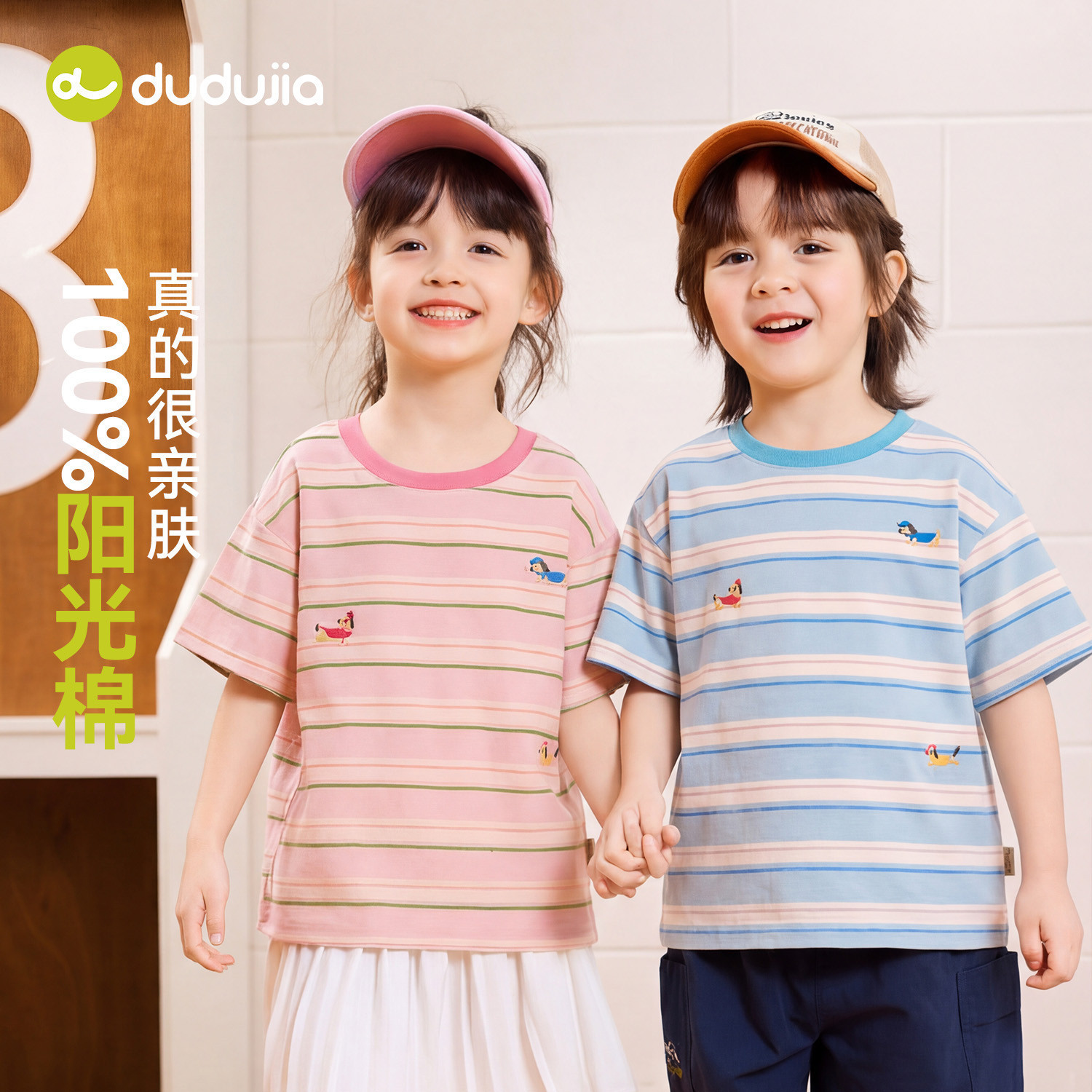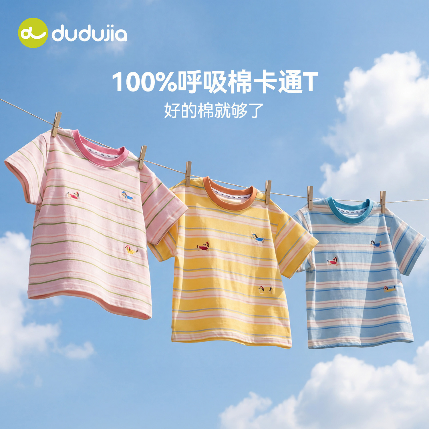 【100%棉】嘟嘟家男童T恤纯棉夏季儿童条纹短袖女童上衣宝宝童装