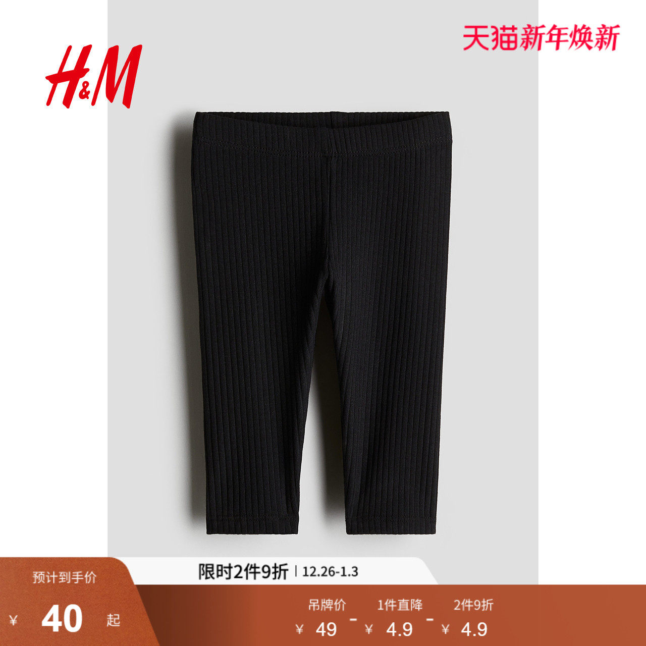 HM童装男婴女婴裤子冬季松紧腰罗纹棉质外出户外打底长裤1265207